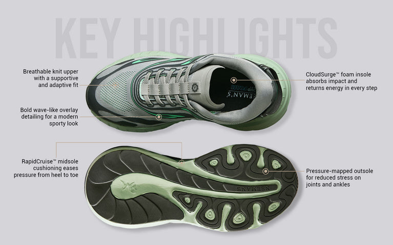 Begin Walk Pulse isn’t just built for comfort - it’s built to show up. With RapidCruise™ cushioning, energy-return tech, and pressure-mapped support, this pair turns morning strides into main character moments. Whether you’re clocking miles or just clocking glances, Pulse makes sure you’re walking with purpose - and presence.