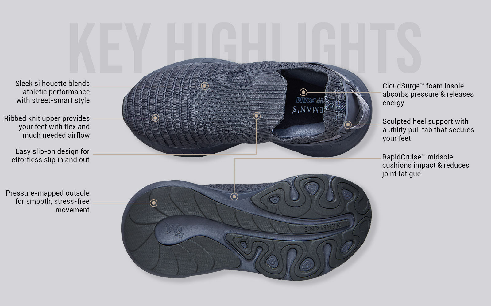 Urban terrain? Consider it handled. With our RapidCruise™ midsole tech to cushion impact, an energy returning foam insole, a pressure-mapped outsole that manages stress on joints & ankles, and a stretch-knit upper that moves & breathes with you, the Begin Walk Trek is made to conquer curbs, commutes, and everything in between.