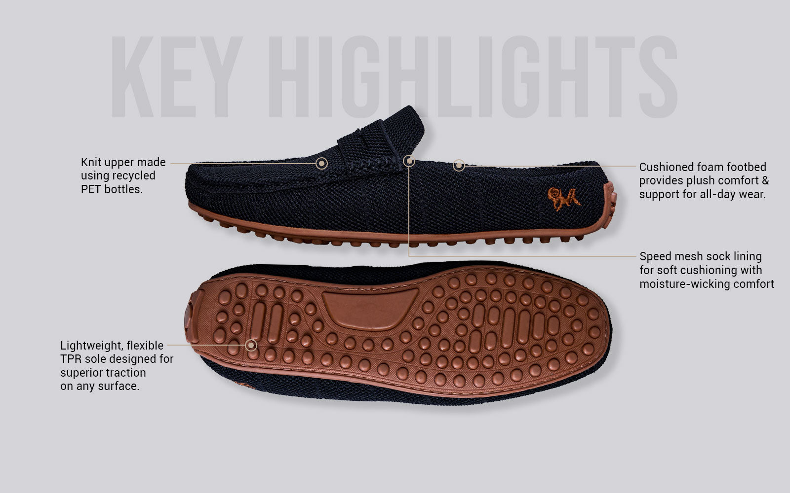 A modern take on the classic penny loafer, these backless mules blend effortless style with all-day comfort. Crafted with breathable knit made from recycled PET bottles and a cushioned footbed, they’re easy to slip on and impossible to take off. The lightweight yet grippy TPR outsole keeps you steady indoors and out, while their sustainable design lets you step lighter on the planet—without sacrificing style.