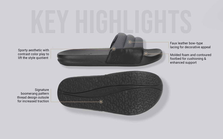 Imagine the feeling of sitting on a ridiculously soft sofa that lets your whole body sink into it and absorbs all your weight. That’s the feeling the Squooshy Slides will bring to your feet. Designed with a sporty aesthetic for a dynamic look and a soft puffed mesh upper padded with memory foam these slides will make you go ‘aaah’ with comfort.