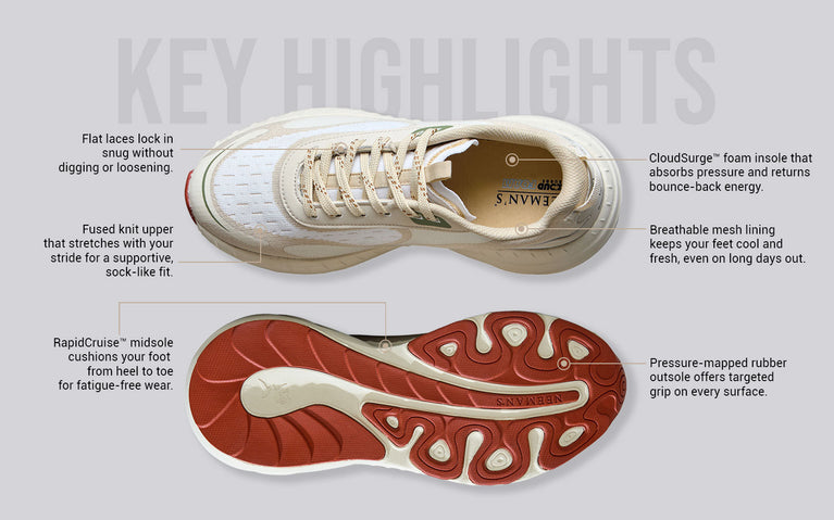 Meet the sneaker that keeps it simple on the outside and indulges you on the inside. The Daily Dasher pairs a breathable knit upper with sleek faux leather accents and cushions every step with our foam insole, built to absorb pressure and cushion your feet for stress-free movement. Easy on the eyes. Easier on your feet.