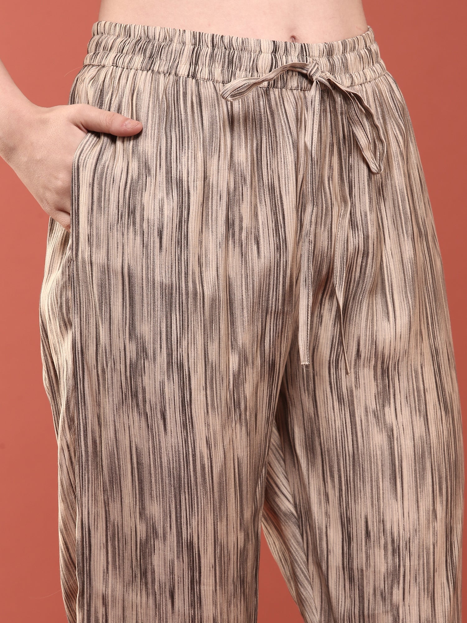 Beige Modal Silk Floral Digital Print Three Piece Set