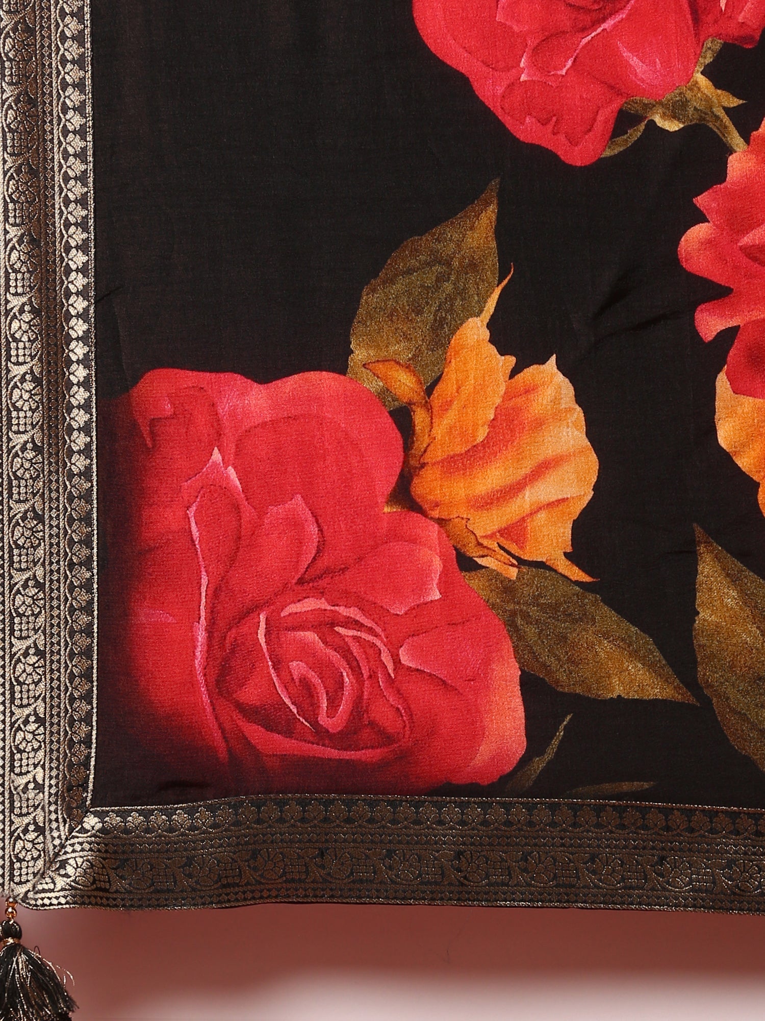 Black Vichitra silk aari embroidered 3 piece anarkali set