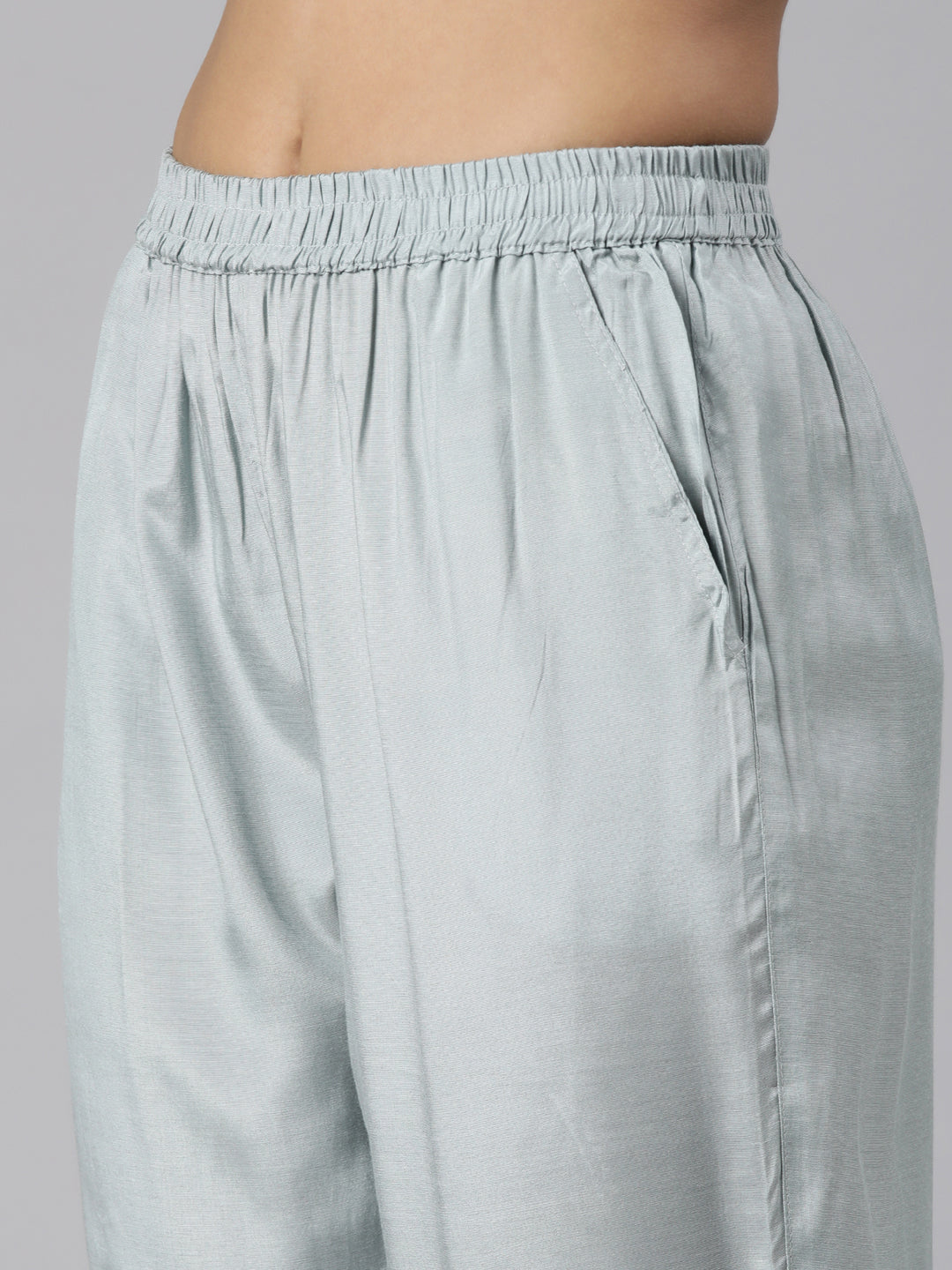 Neeru's Blue Regular Straight Floral Kurta And Trousers With Dupatta
