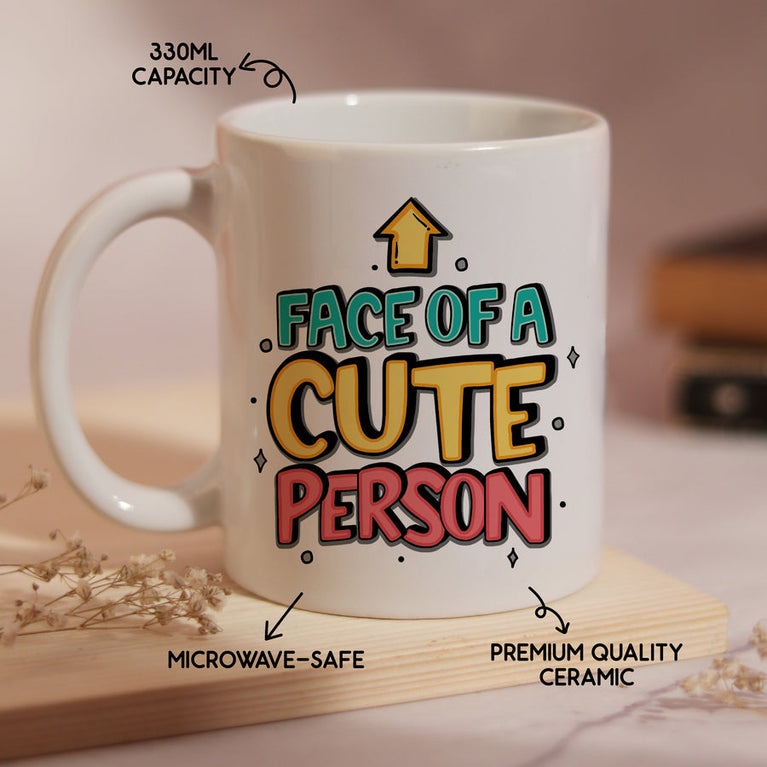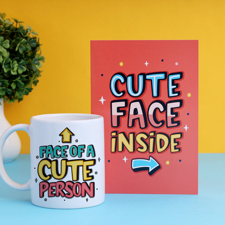 Some people are cute. And then there are those who are Panda-level cute. This combo is for that dangerously adorable human in your life who needs a reminder that their face is basically a certified superpower.This combo includes:The Cute Person Mirror Card – A magical greeting card with a hidden mirror inside. As soon as it's opened, the card shows the real cute face – theirs!Front Text: "Cute Face Inside"Inside Text: "And this face looks even cuter when it smiles. Like right now!"It’s the kind of surprise that makes people smile before they even realize they’re smiling.The Cute Person Mug – A ceramic mug that screams “adorable” every time it’s used. Because the cutest person deserves a mug that matches their vibe.Mug Text: "Face of a Cute Person"Perfect for tea, coffee, or just staring at while feeling fabulous.This combo is a feel-good, smile-wide, self-love bomb that never fails to make someone's day brighter.