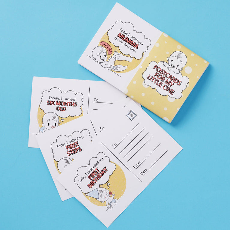 From first words to first steps, this set of 15 “Postcards for My Little One” is a heartwarming way to capture your baby's every special milestone. With cute baby illustrations and adorable messages like “Today I walked my first steps” or “Today I called you mumma for the first time”, you can document all of your baby’s special moments.