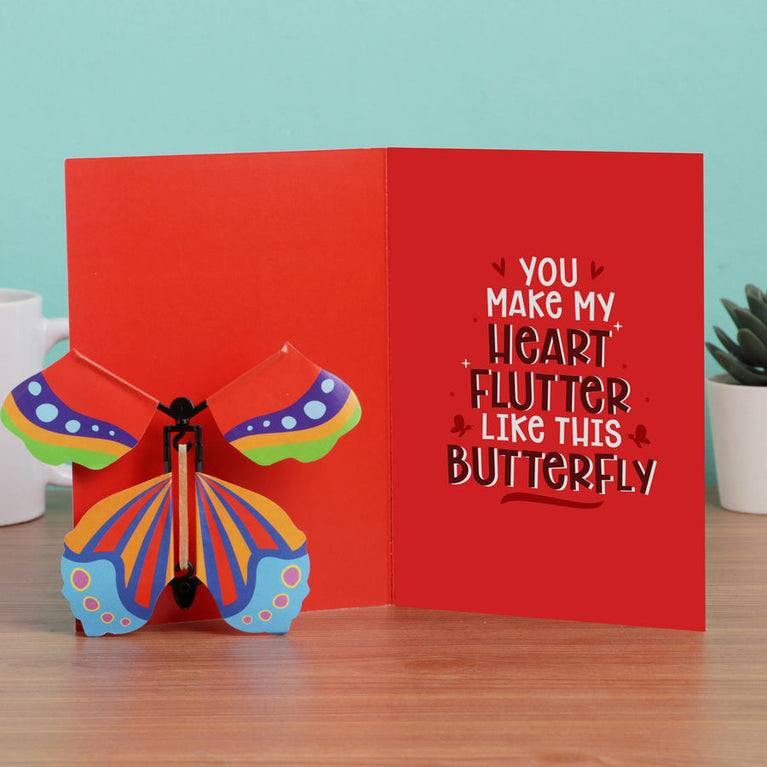 For the one who makes your heart flutter (and also laughs at your pizza jokes), we present a combo that’s equal parts cute, cheesy, and heartwarming.This romantic combo includes:The Aww-dorable Butterfly Card – A greeting card that literally flutters! Open it with a gentle jerk and a surprise butterfly bursts out, making your special someone smile, scream, or both. The card reads:Cover – “You know how you make me feel”Inside – “You make my heart flutter like this butterfly”The Reason Why I Love You Mug – A ceramic mug with the sweetest illustrations and reasons that explain exactly why you love your partner. Perfect for morning coffee, evening chai, or midnight cocoa with a side of feelings.Together, this combo is the ultimate cute attack – one that will leave your partner blushing, smiling, and probably framing the butterfly (or chasing it around the room).