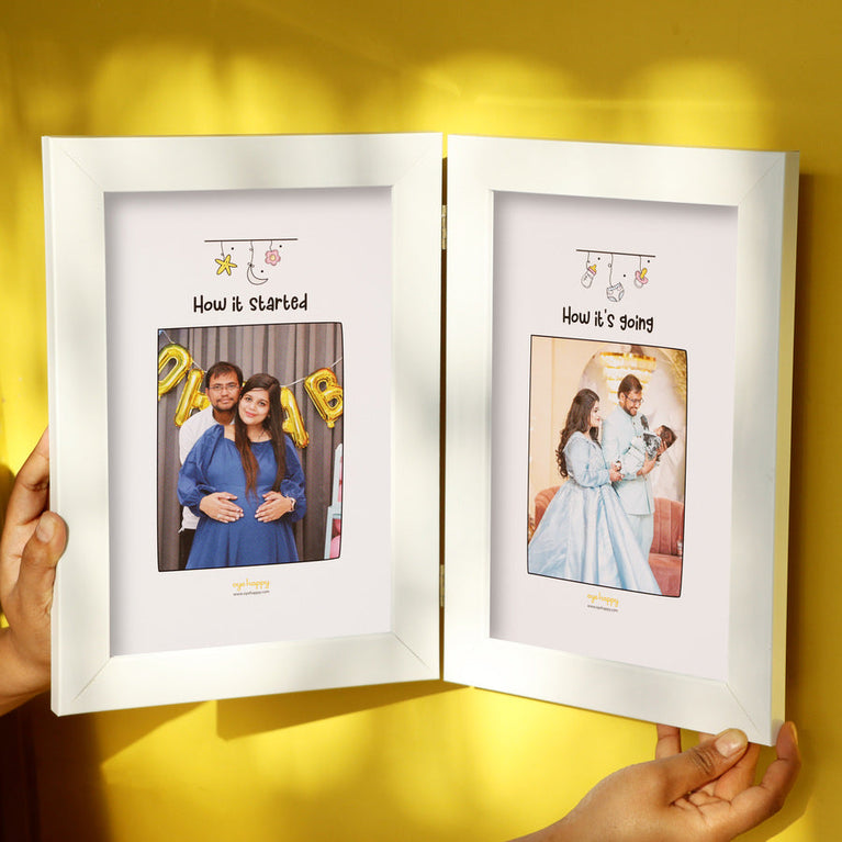 Nothing changes life quite like welcoming a baby. This Then and Now frame captures the before-and-after of the most incredible journey—parenthood. One frame for the anticipation, one for the joy, and a lifetime of love in between.You can customize the frame with any two photos that reflect this beautiful transformation, whether it’s the excitement of expecting or the overwhelming joy of holding your baby for the first time. Specifications : Size of the Frame (without glass) - A4 Material - Wooden