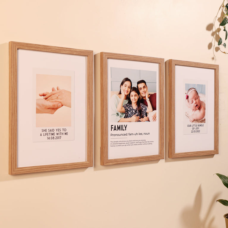 Celebrate your most cherished relationships with this beautiful set of 3 wooden photo frames, each customized with your favorite image and a heartfelt message. Whether it's for your relationship, family, or friendship, these frames are designed to capture and preserve the love and memories that matter most.This set of frames will always have a special place in your home, serving as a timeless reminder of the bonds you hold dear.