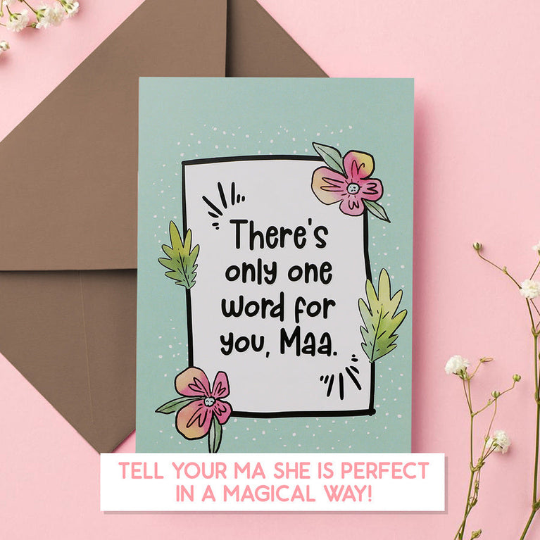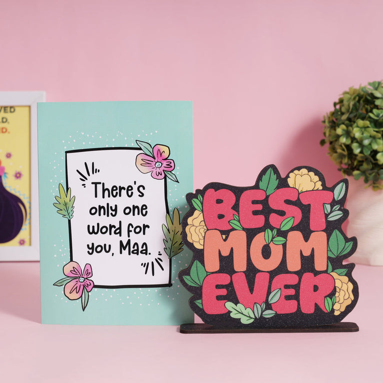 This Mother’s Day, say it in a way she’ll never forget — with a gift that reflects just how perfect she truly is.This heartfelt combo includes:A Mirror Card that opens with the words “There’s only one word for you Maa” and reveals the magical answer — “Perfect..!” — alongside a loving message she'll always remember.A Best Mom Ever Table Top she can proudly display at home or work, reminding her daily of how loved she is.Thoughtfully designed and beautifully packaged, this combo is made to make her smile — and maybe even tear up (just a little).Specifications -Mirror Card Size: 17.78 x 25.4 cmTable Top Material: Premium MDF with a high-quality printMirror card is elegantly gift-wrapped and securely packed to keep the mirror safe during delivery.