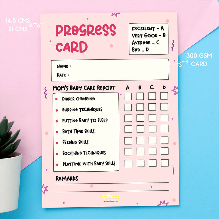 New moms juggle it all—soothing, feeding, changing, and somehow still managing to love unconditionally. This adorable and funny Report Card is the cutest way to recognize her superhero skills. Whether they are acing their diaper duty or need a little improvement in learning burping techniques, this card is a sweet and funny way to tell them that they are doing great! Specifications:Size of the Card - A5