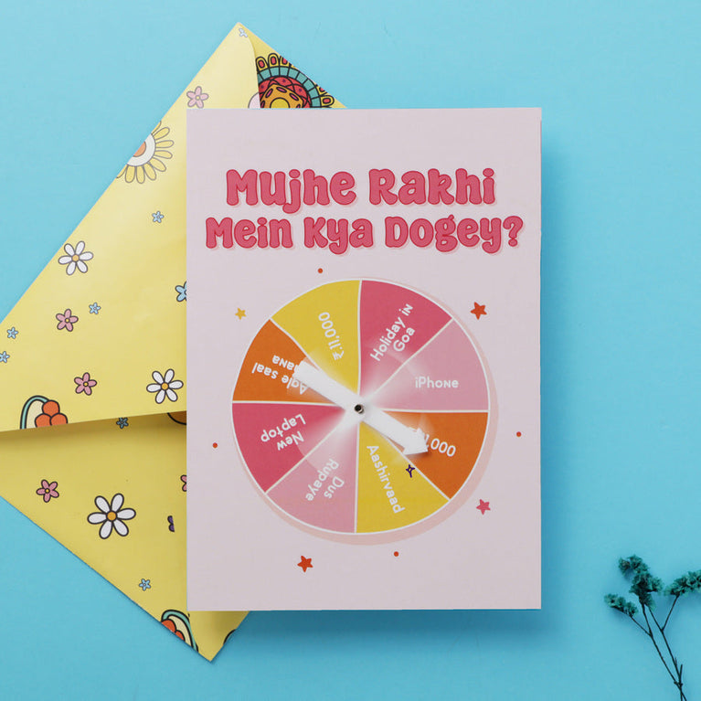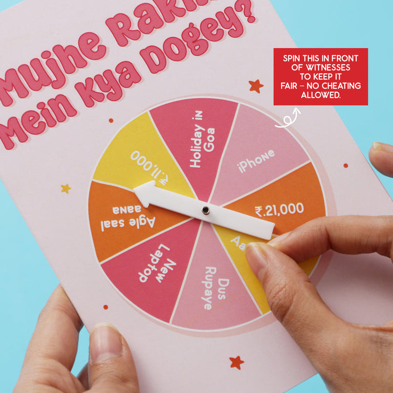Try this hilarious Rakhi special spinwheel card to make a decision on your perfect Rakhi gift & make your sibling laugh their heart out. Remember to play the game fairly. :-P
