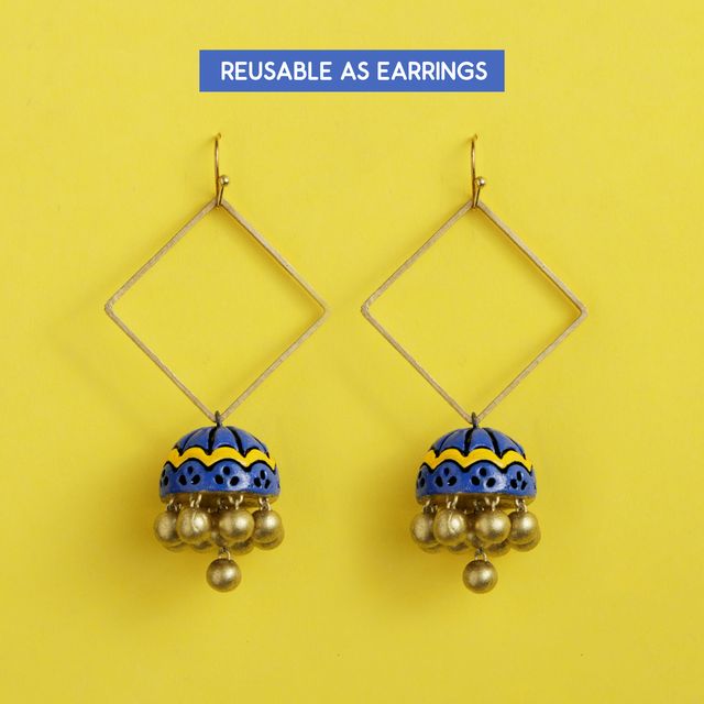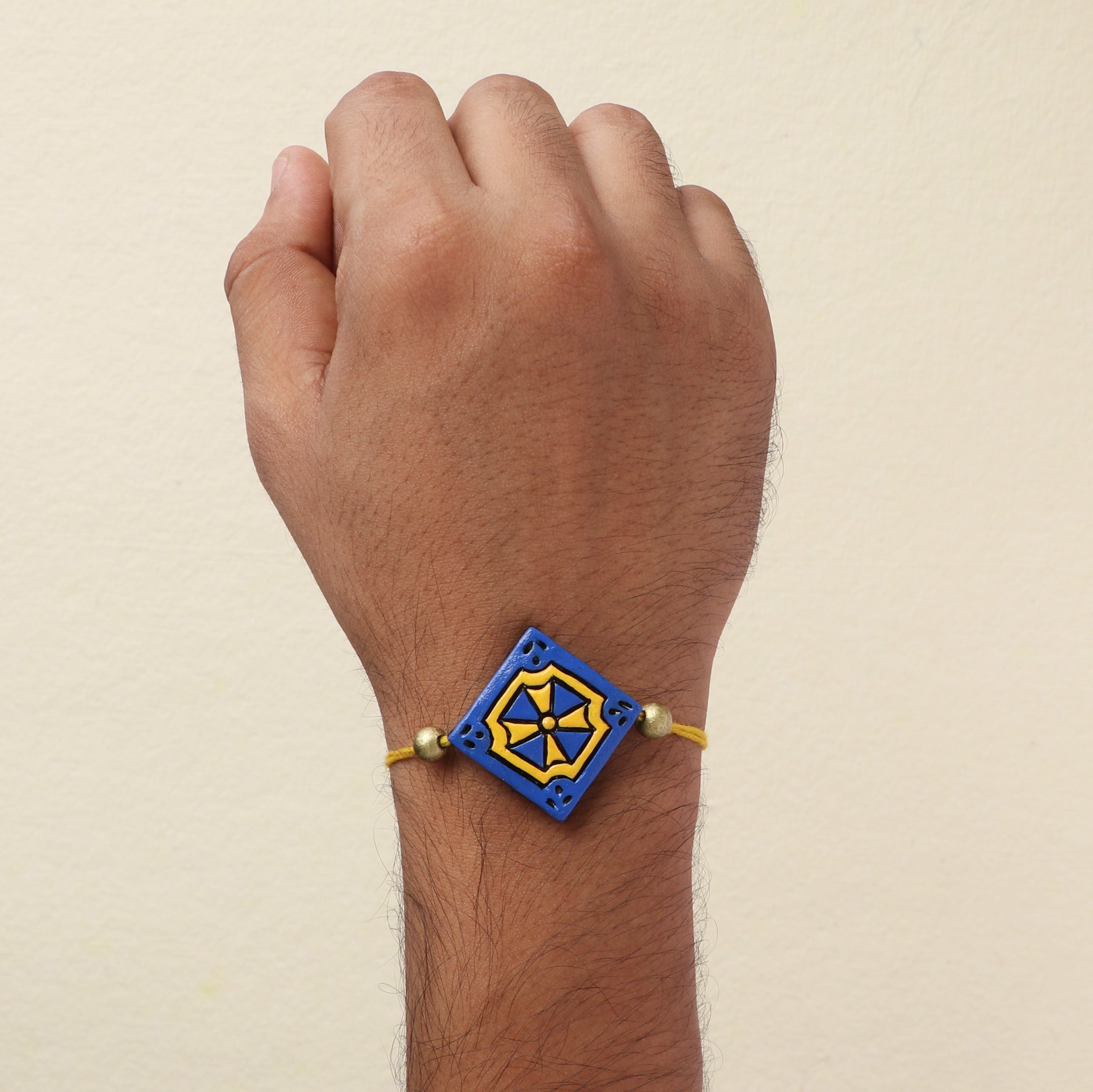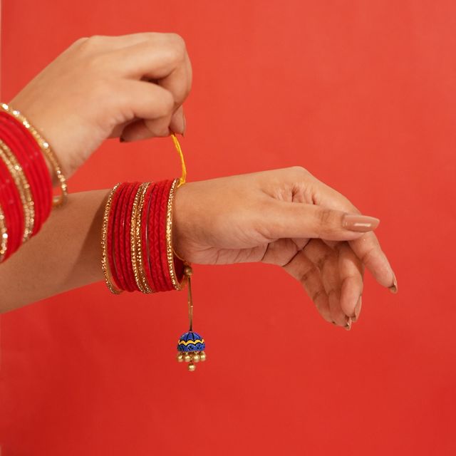 Crafted from eco-friendly terracotta, this sustainable rakhi set features a pair of beautifully crafted lumba rakhis that double as stunning earrings post-celebration.