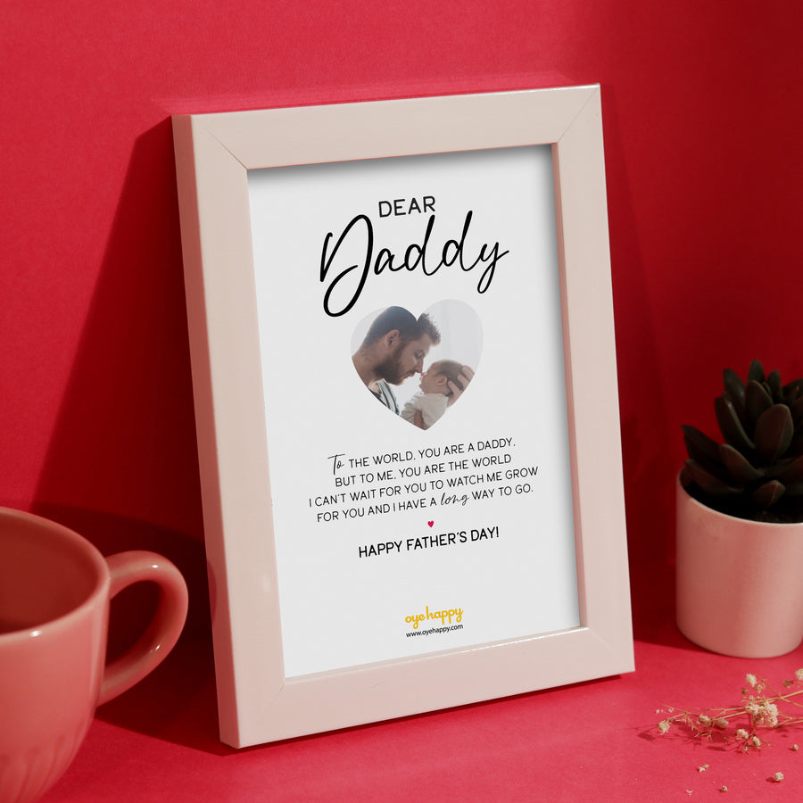 The frame holds a sweet message from the baby and is customisable with a cute photo of the baby and it's daddy.