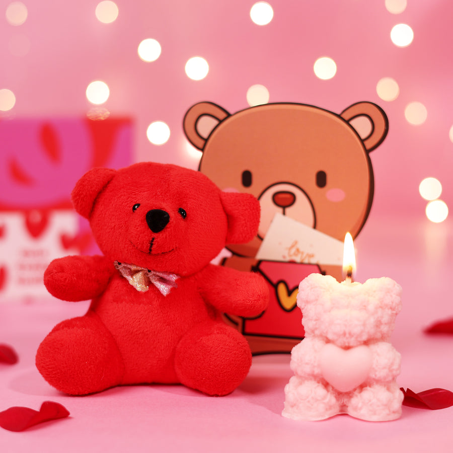 Comfort packed with cuteness. The red teddy is soft and perfect for hugs, while the mini teddy card adds a sweet little message. The hamper also has a cute teddy candle. Cozy, adorable, and full of feel-good energy.