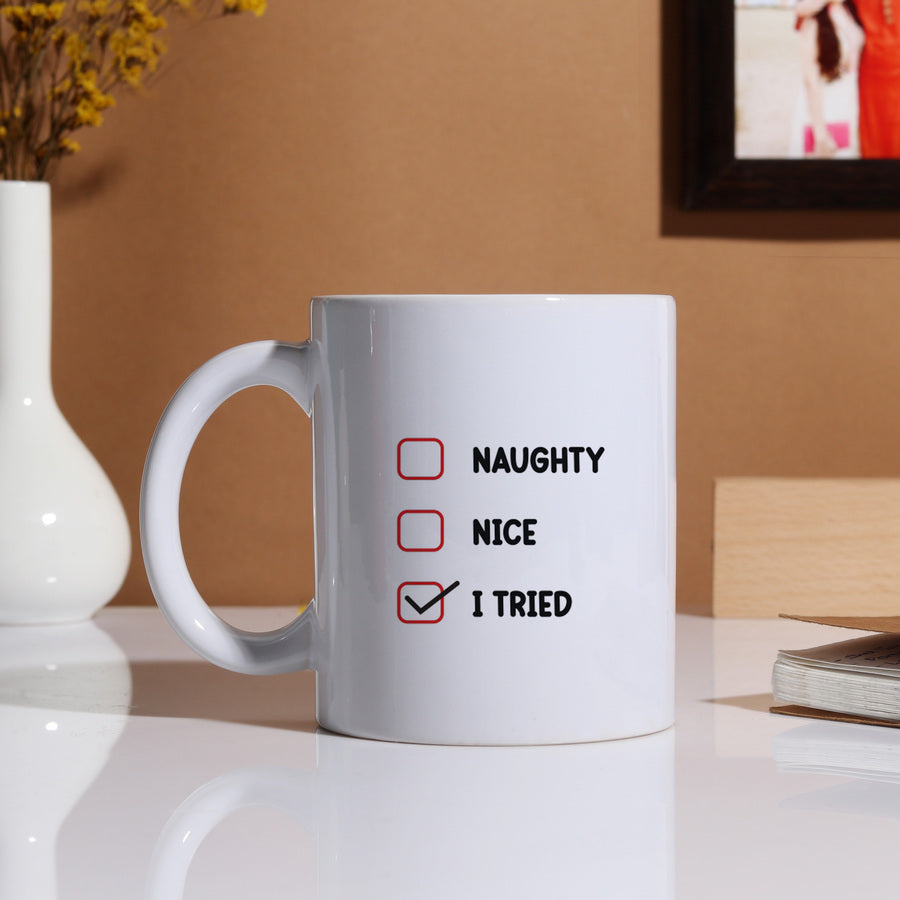 Surprise a Christmas-crazy person with their very own special christmas mug with santa’s naughty, nice or just plain I tried list. Perfect for that friend who’s maybe a little nice, a little naughty, and definitely a lot of ‘I Tried.’