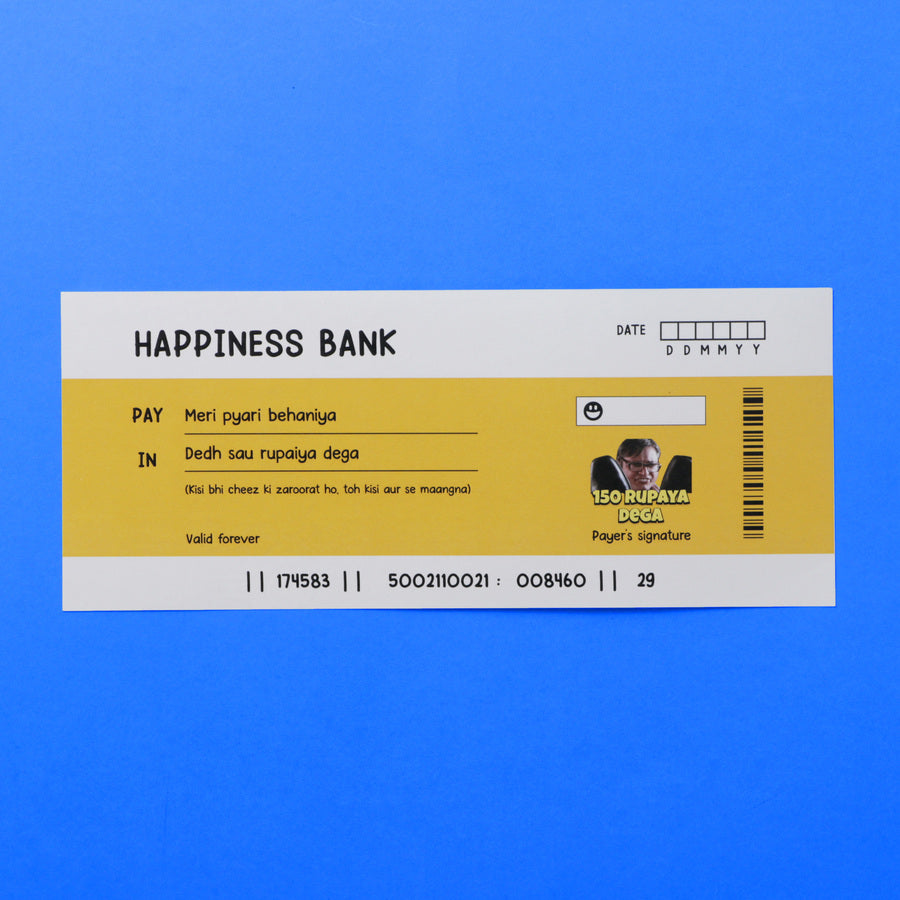 This Rakhi, let the gift be priceless… and also totally useless. A prank cheque with all the drama and none of the digits. Surprise (or shock) your sister with this funny rakhi gift and make her laugh her heart out.