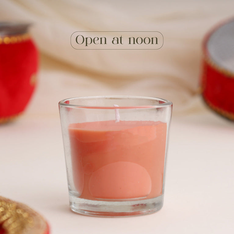 The first Karwa Chauth is always special. It’s the beginning of a lifetime of traditions, love, and promises. Therefore, her first Karwa Chauth deserves to be celebrated not just with rituals, but with 24 hours of love. Here's a hamper to make sure that your wife feels cherished, adored, and truly special from the moment she wakes up till midnight. This surprise comes with 7 of our romantic gifts neatly gift-wrapped into one hamper box. Each gift has instructions on when to open the box. Open this right after you wake up -Ted Talks - Start her very first Karwa Chauth morning with your voice wrapped in a cuddle. A soft, heartwarming surprise to remind her she’s never alone in this journey of love. The sweetest way to say “Good morning, my love” on her very first fast for you. It is the cutest way to tell your wife how much you love her. This insanely fluffy heart comes with an audio device hidden inside. All you have to do is share a voice message with us and we’ll upload it on the device so that every time it is pressed, your voice will play from the stuffed toy. And you know what’s cooler? This device is re-recordable. That means you can choose to record a new message every morning for your partner to make them smile with. Open this at night - Moon Lamp - A little moon for her before the real one rises - just for her first Karwa Chauth night. To light up the moment when she waits for the moon with love in her eyes.Open at noon - Peach Scented Candle - A fresh peachy fragrance to keep her relaxed and glowing through the day. Perfect for her first Karwa Chauth afternoon.Open this after lunch - Rose Almond Chocolate - A sweet little surprise waiting for her after the fast. Rosy, nutty, and filled with loveOpen this in the evening - Jhumka - A pair of pretty jhumkas to complete her Karwa Chauth look.Open this right before bed - Mirror Card - Greetings Cards never go out of fashion in matters of love. Here’s a surprise mirror card for your wife which is guaranteed to make her blush. This card tells them that they are your forever chaand.Open at midnight -The Star Above Us - A piece of the sky, capturing the moment your forever began. The perfect ending to her first Karwa Chauth - a star that marks your love story. If there’s a special moment that you’d like to frame, like the moment of your wedding or the time you first met your wife - this is best way to make it special.