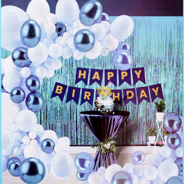 Make every birthday extra special with this complete premium decoration kit! Perfect for kids, adults, or family birthdays, it brings a vibrant and festive touch to any party. From creating a stylish photo corner to filling the room with fun décor, this kit has everything you need for a memorable and Instagram-worthy celebration.Specifications:Includes: Blue foil curtains, “Happy Birthday” banner, Metallic balloons, Blue balloons, White balloons