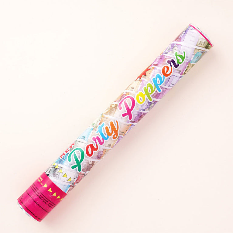 Who needs confetti when you can make it rain cash (the fun kind)? This Cash Party Popper is filled with imitation currency notes that fly out in style the moment you twist it open. Big enough to create a grand “wow” moment at birthdays, anniversaries, weddings, or even New Year’s parties. Because nothing says party like making it rain.Specifications:Size – 28 cm