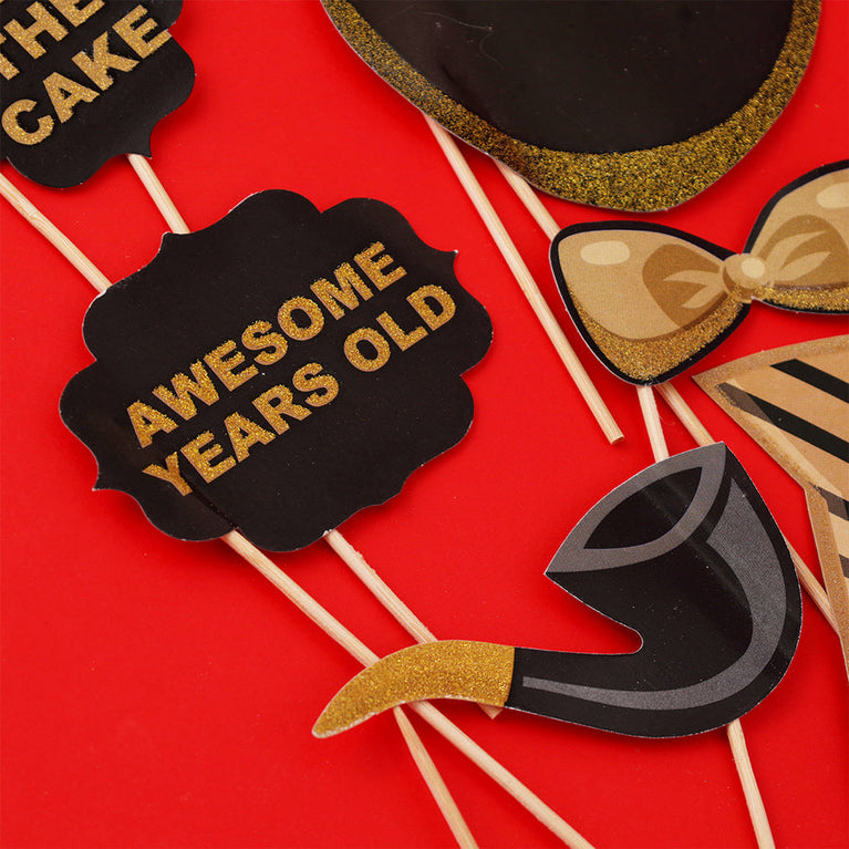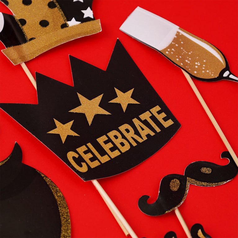 Add sparkle and fun to any celebration with this stylish glitter party props kit! Perfect for birthdays, anniversaries, New Year’s, or glamorous adult parties, it makes photo booths extra entertaining and Instagram-worthy. Strike hilarious poses and capture memorable moments with these ready-to-use props.Specifications:Includes: 20 stylish props including glasses, hats, speech bubbles, lips, crown, pipe, champagne, cake, and more