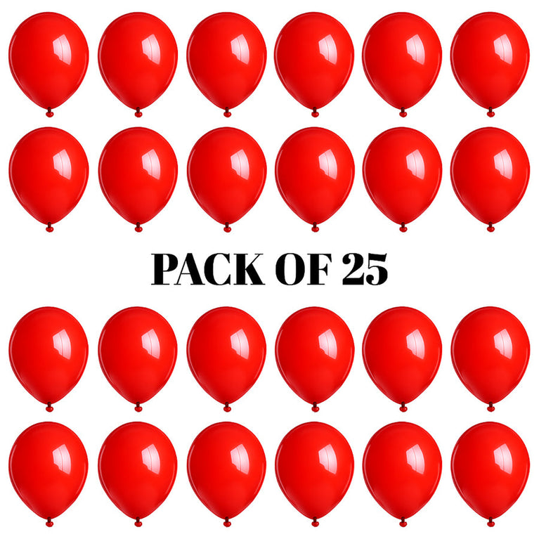 Bring vibrant charm to your celebrations with these glossy Red balloons! Perfect for birthdays, anniversaries, weddings, engagements, and house parties – these balloons add a bold and festive touch to any setup.Use air to create stunning arches, garlands, photo backdrops, or stylish table centerpieces. Made from thick, high-quality rubber, these balloons are durable, burst-resistant, and perfect for both indoor and outdoor decor.Specifications:Number of Balloons - 25Material - Rubber