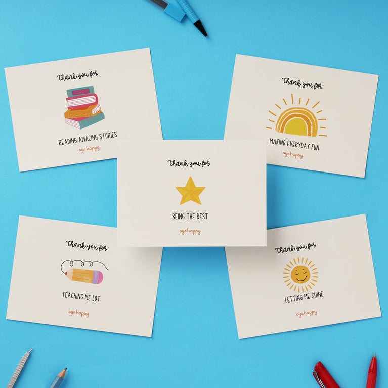A teacher's day gift that is cute, colorful, and packed with kindness! This set of 5 adorable thank you cards is perfect for students or anyone looking to thank a teacher in the most adorable way. It's thoughtful, fun, and sure to make them feel extra special.Specifications: Size of each Card - 9.8 x 14 cmsNumber of Cards- 5 Cards