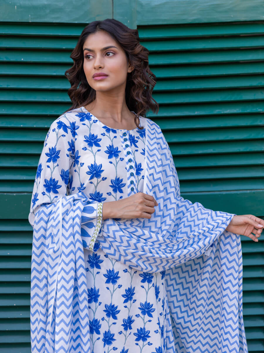 Classic Chevron Hand Block Printed Cotton Dupatta