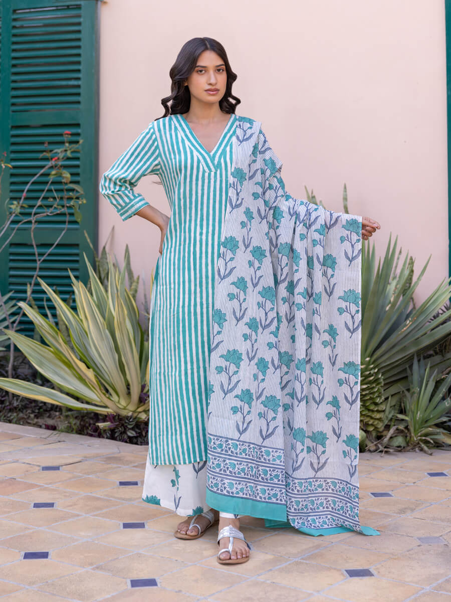 Dancing Lotus Hand Block Printed Cotton Dupatta