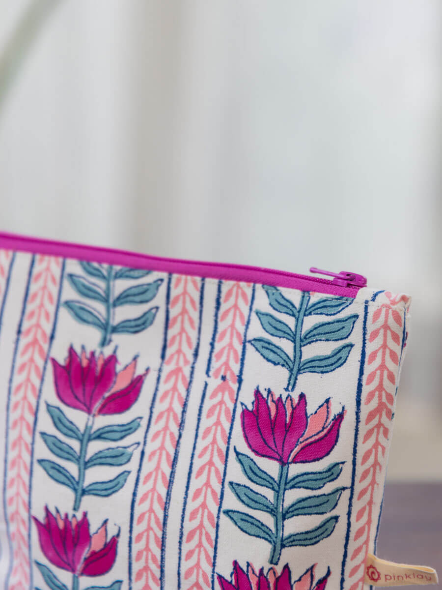 Lotus Love Hand Block Print Cotton Travel Pouch