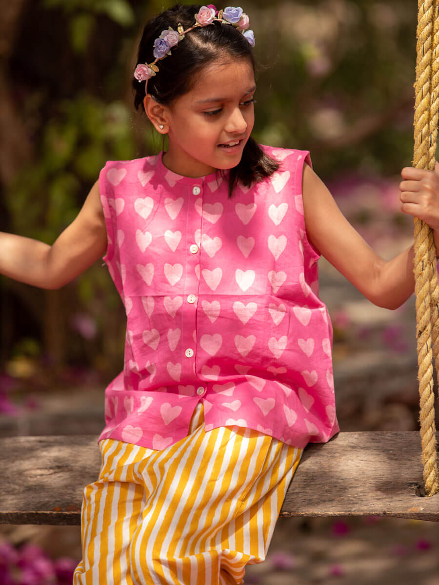 Set of 2 - Linda Organic Cotton Block Printed Top & Pants Set