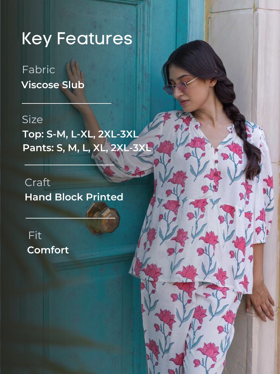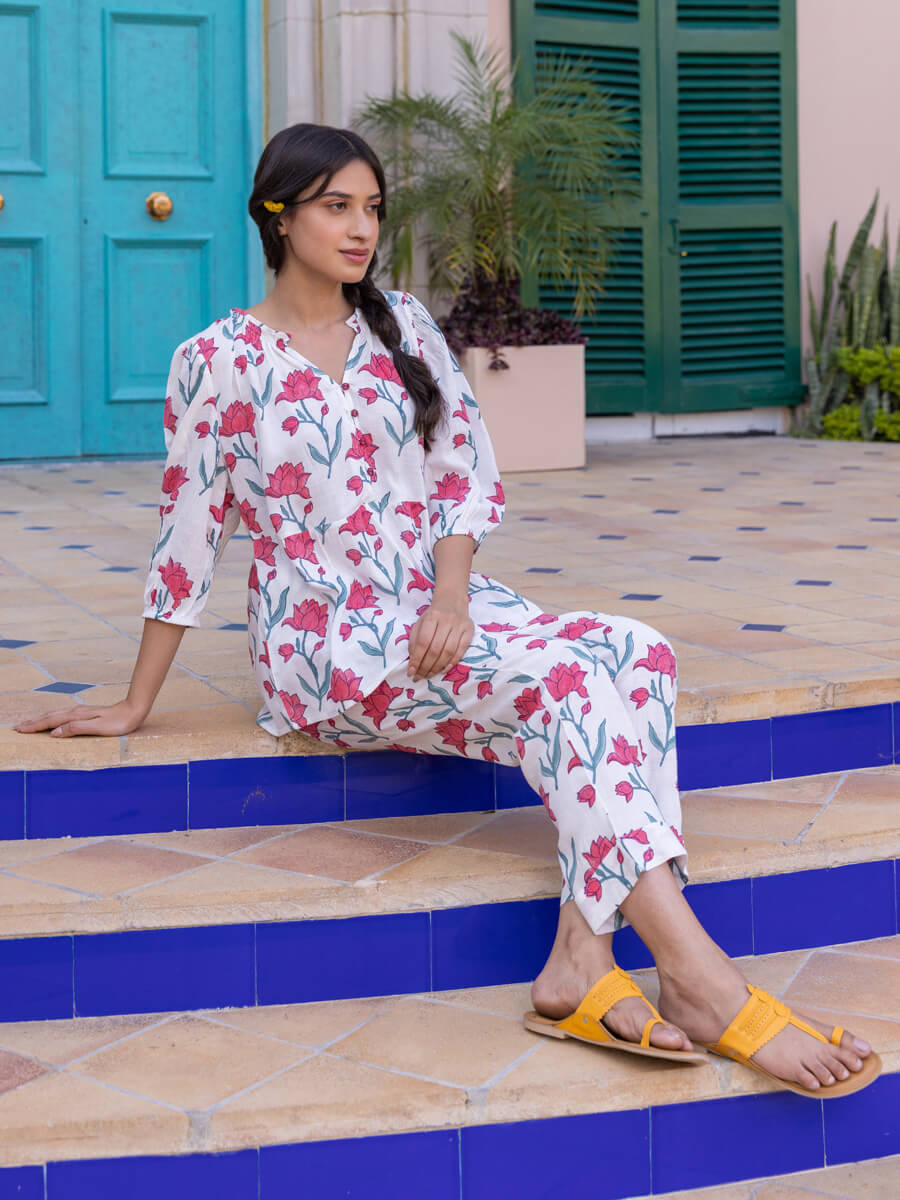 Set of 2 - Lotus Hand Block Printed Co-ord Set
