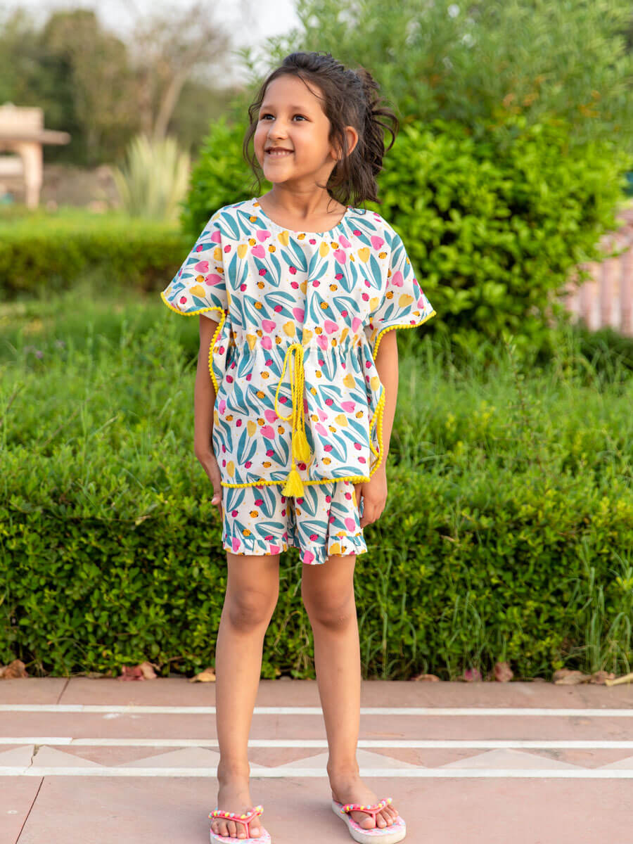 Set of 2 - Vibgyor Organic Cotton Kaftan Top and Shorts