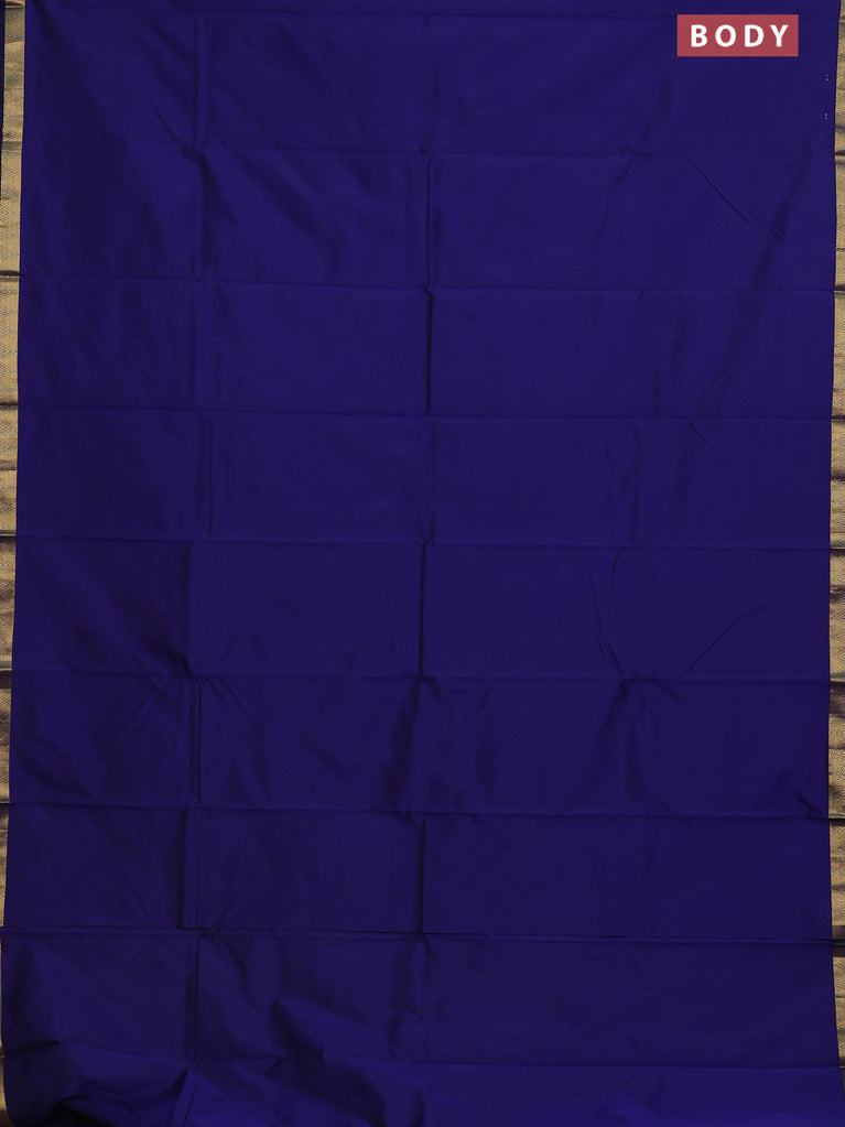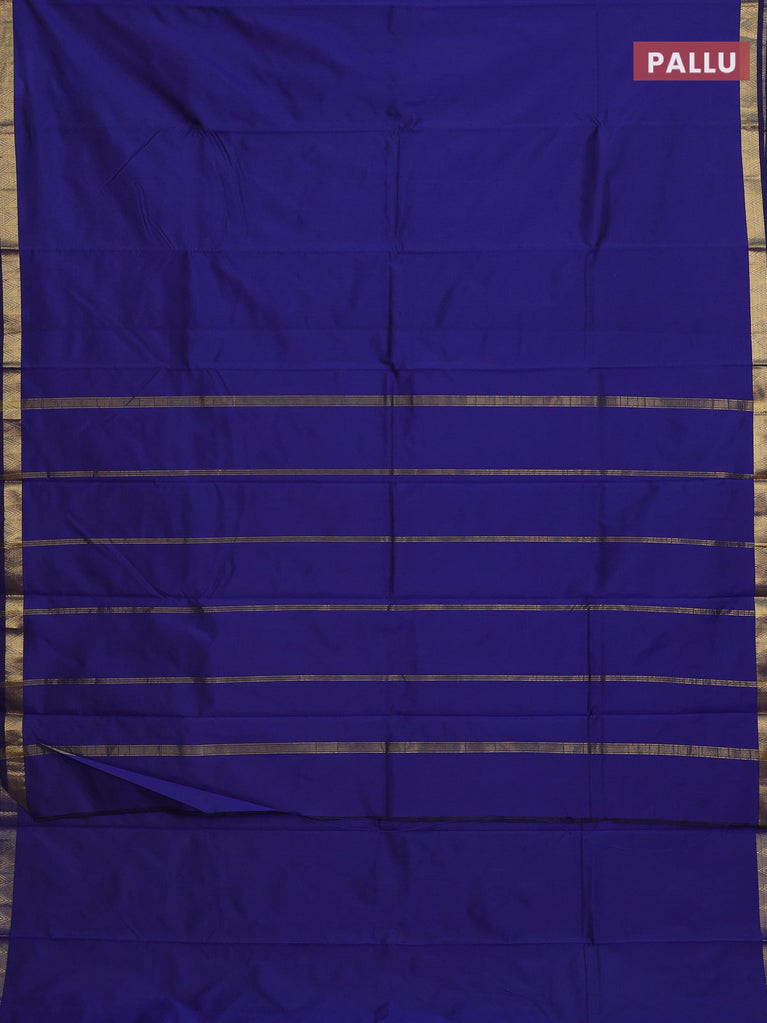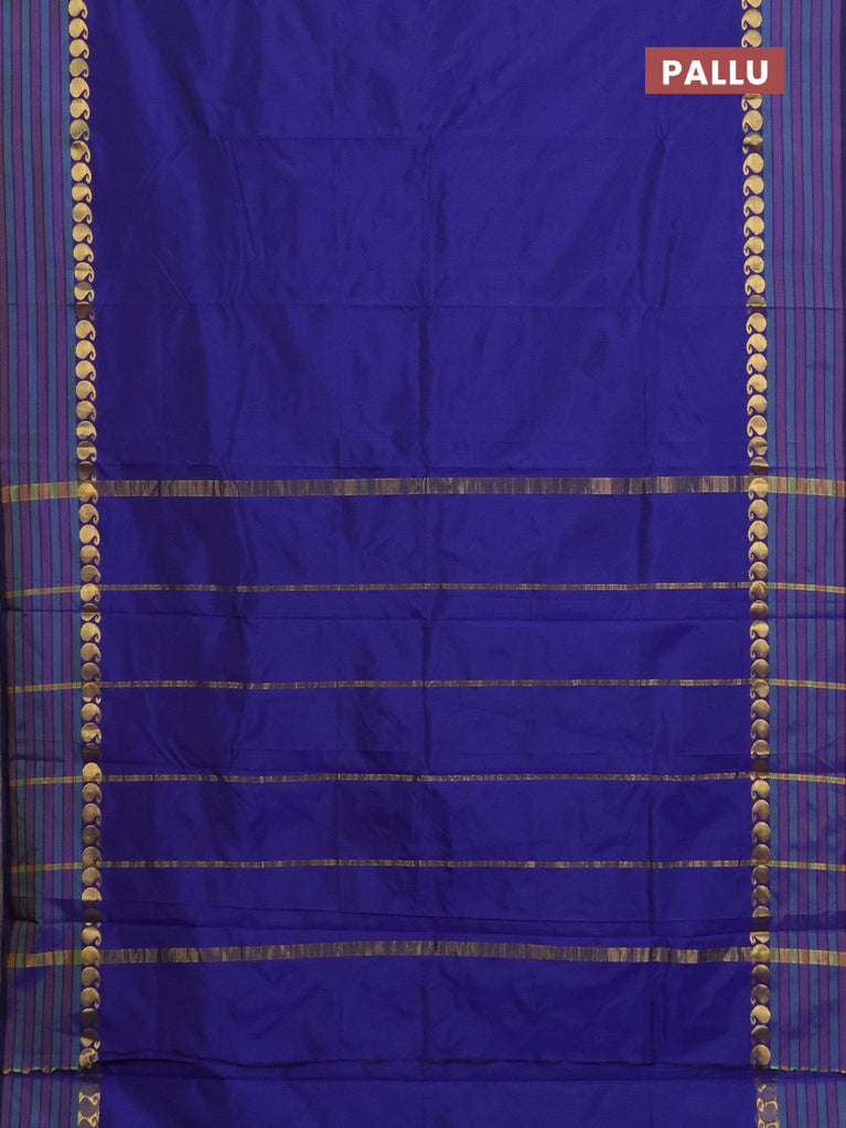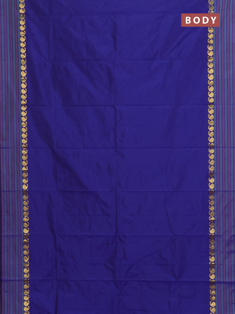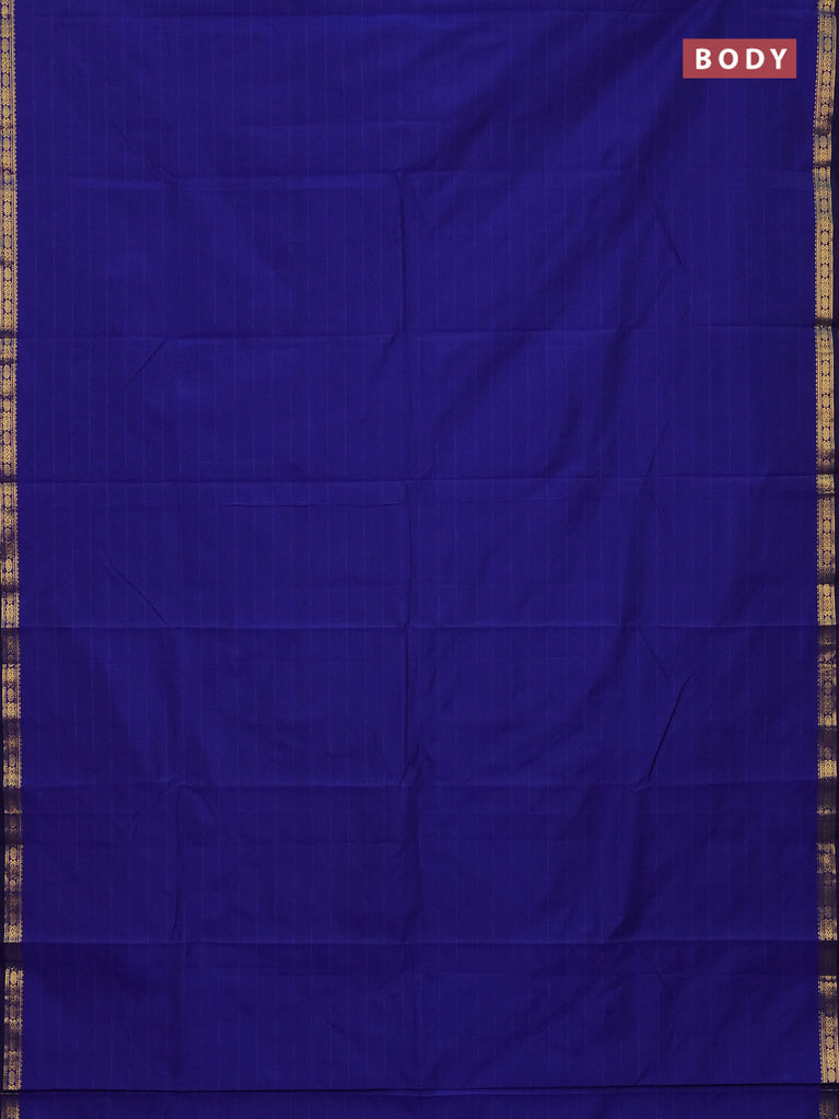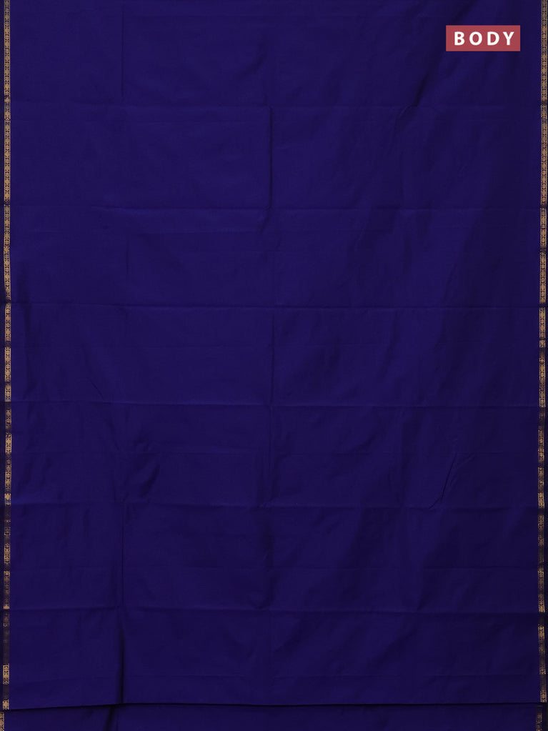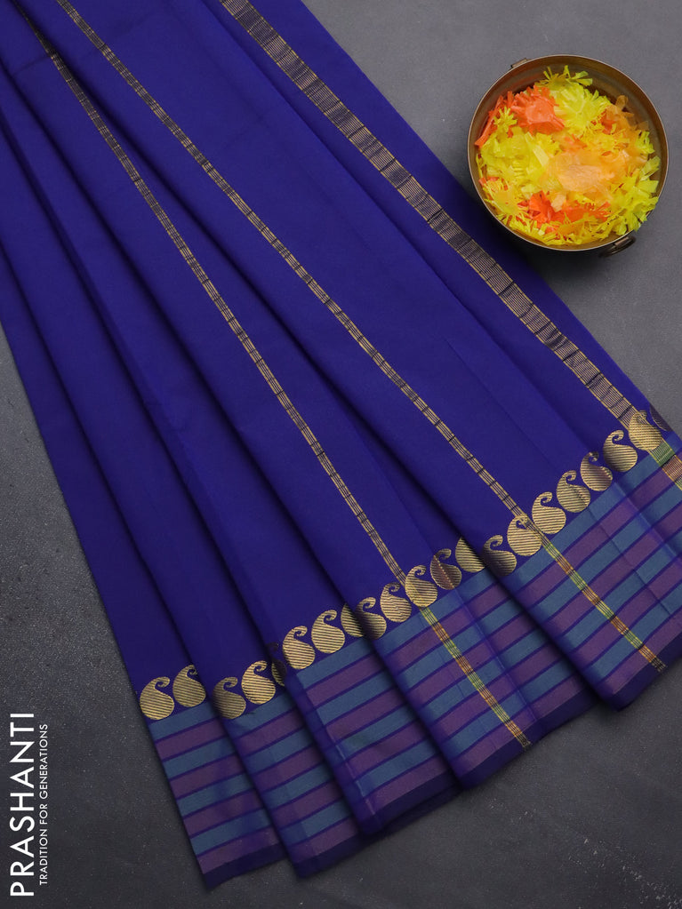 Arani semi silk saree blue with plain body and small zari woven border