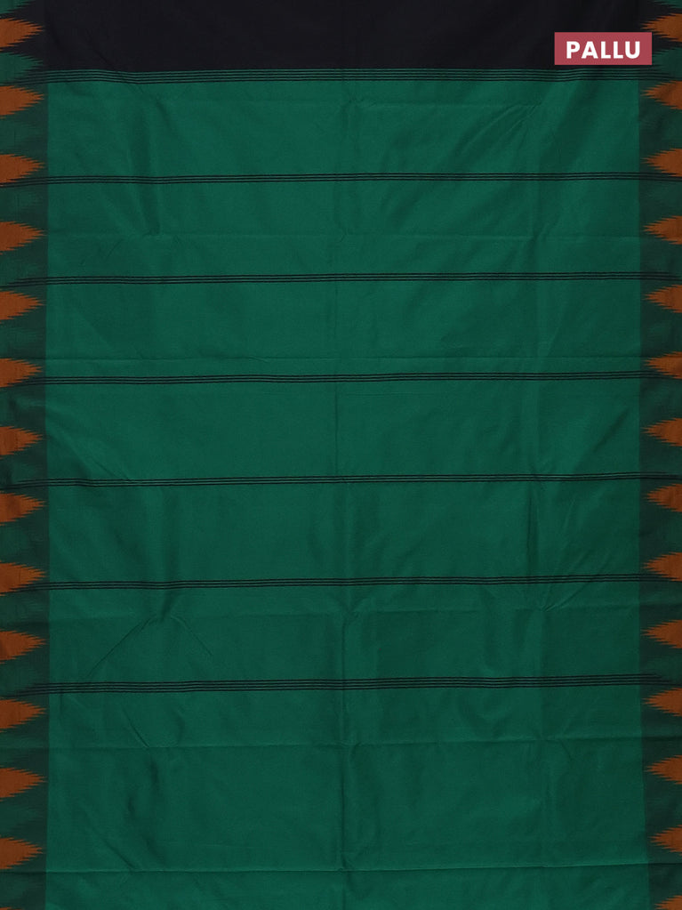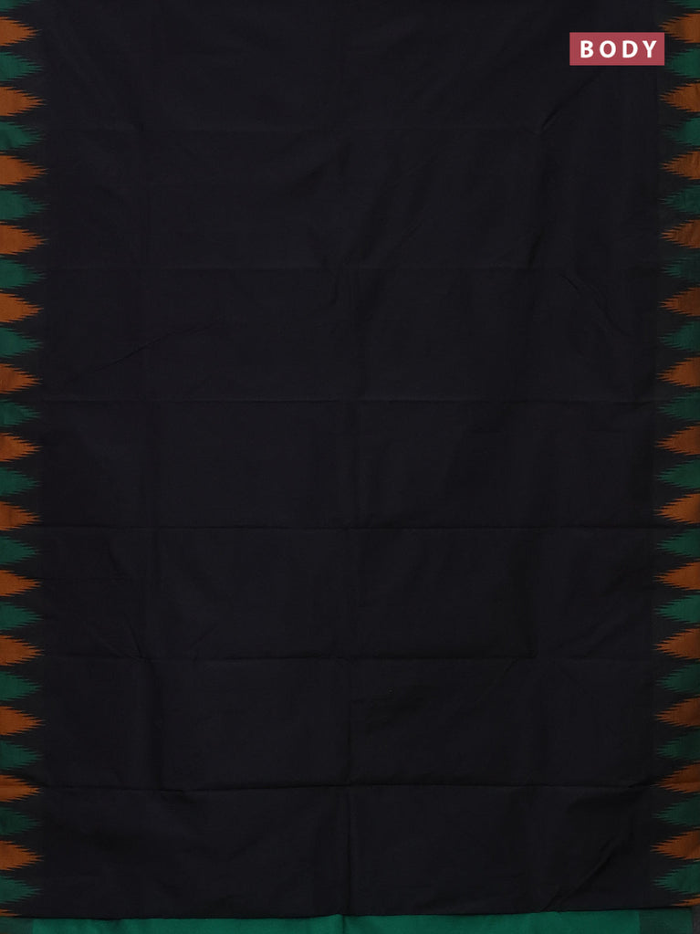 Arani semi silk saree black and green mustard yellow with plain body and temple design border