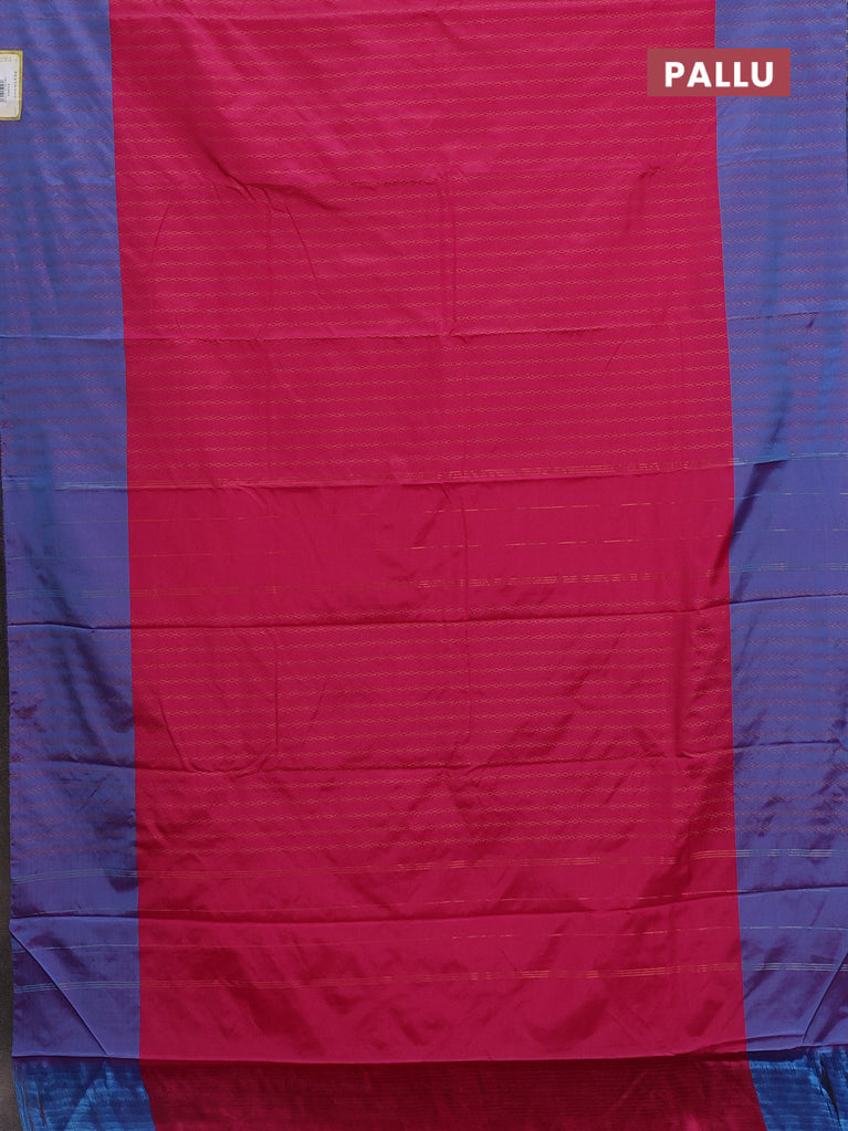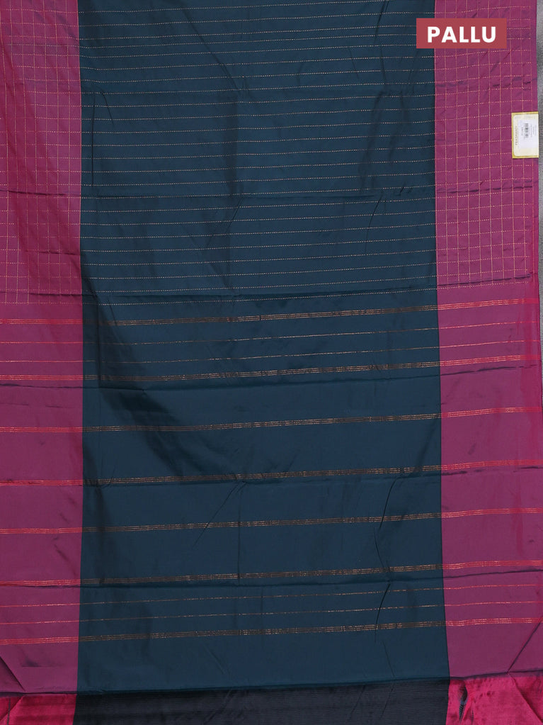 Arani semi silk saree peacock green and magenat pink with allover copper zari checked pattern and copper zari woven simple border