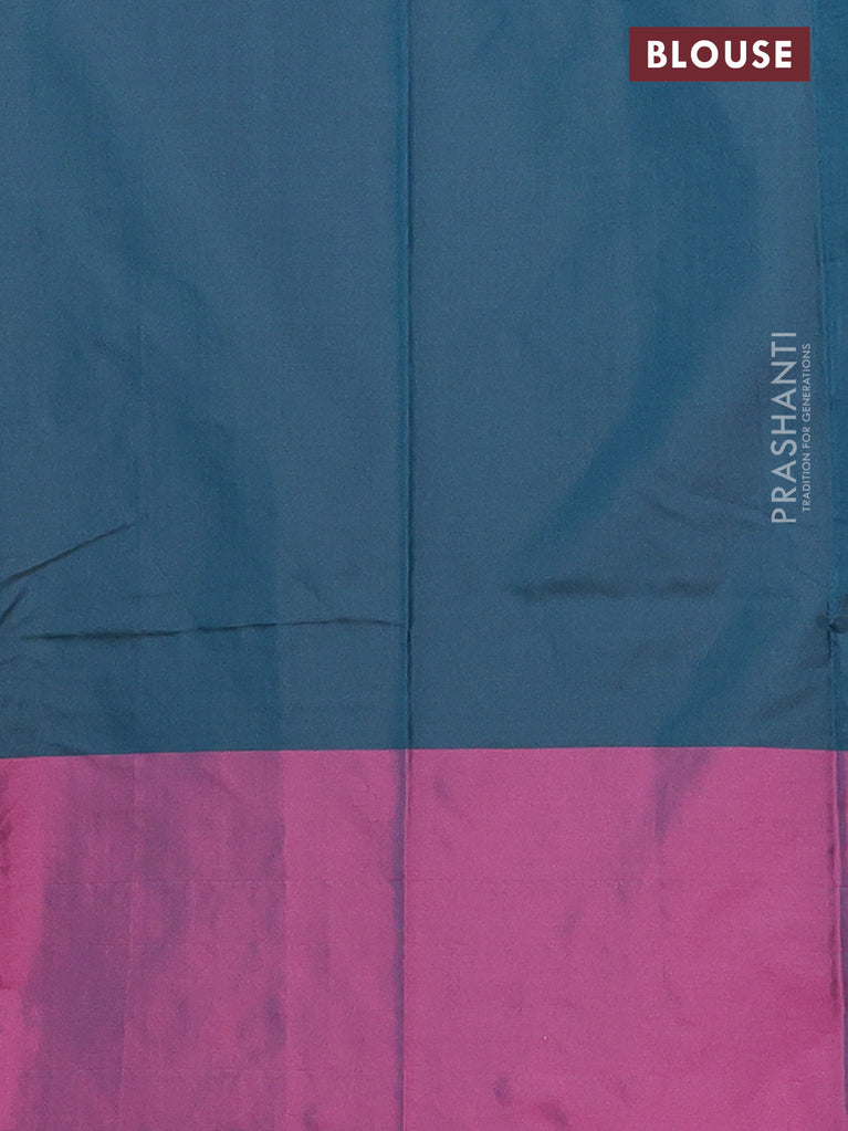 Arani semi silk saree peacock green and pink with allover zari weaves and zari woven border