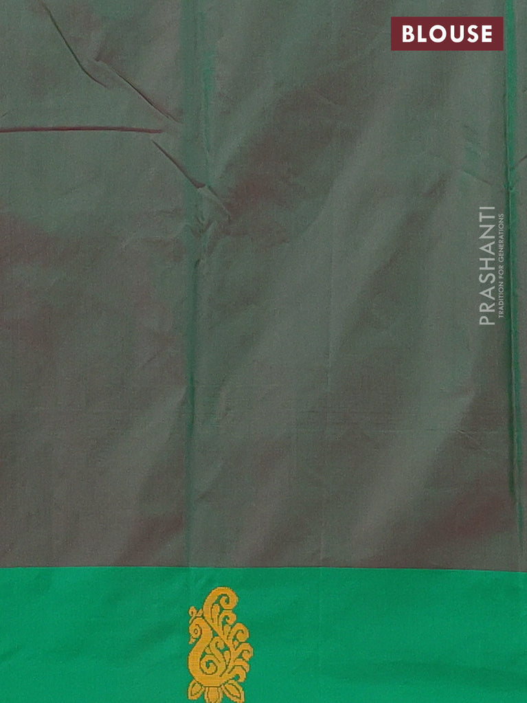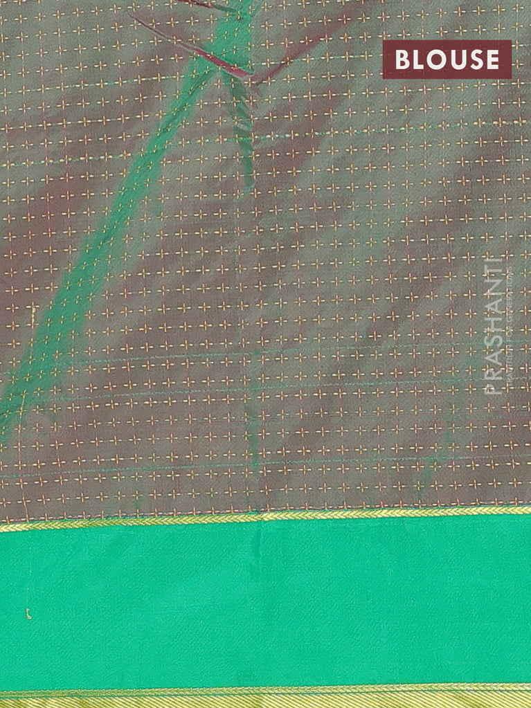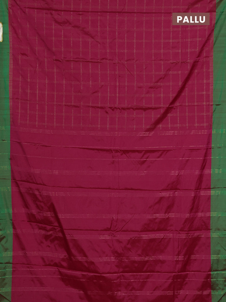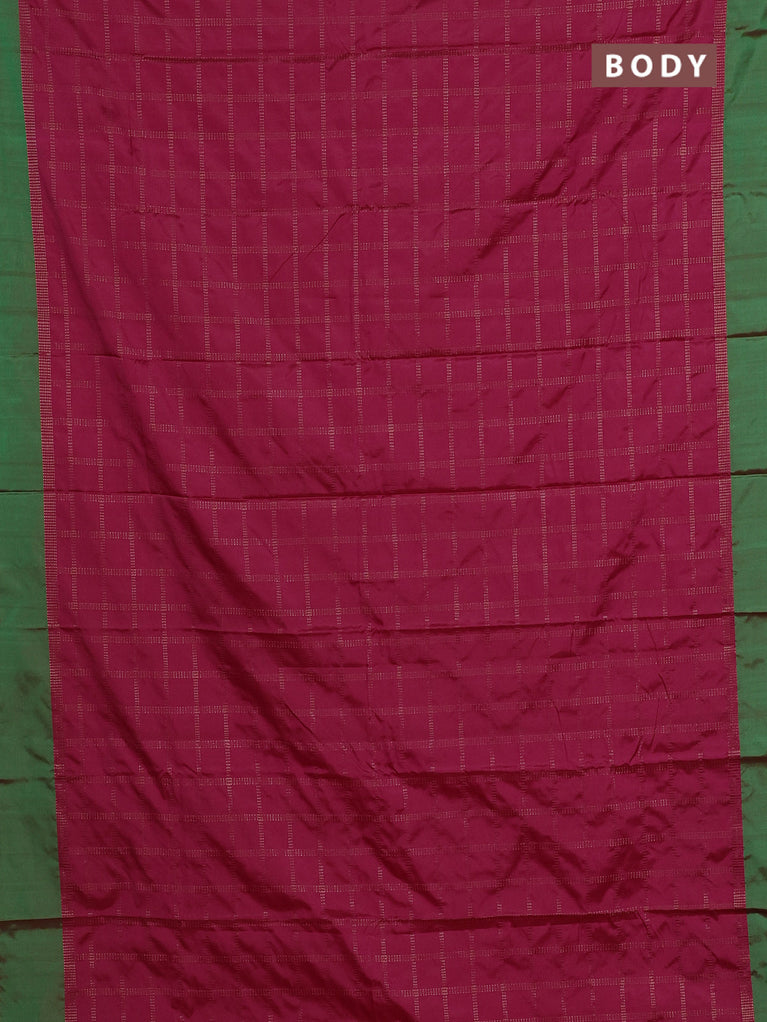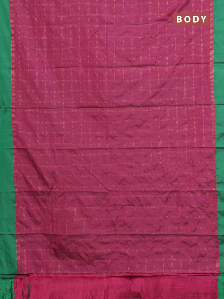 Arani semi silk saree pink and dual shade of green with allover copper zari checked pattern and copper zari woven simple border