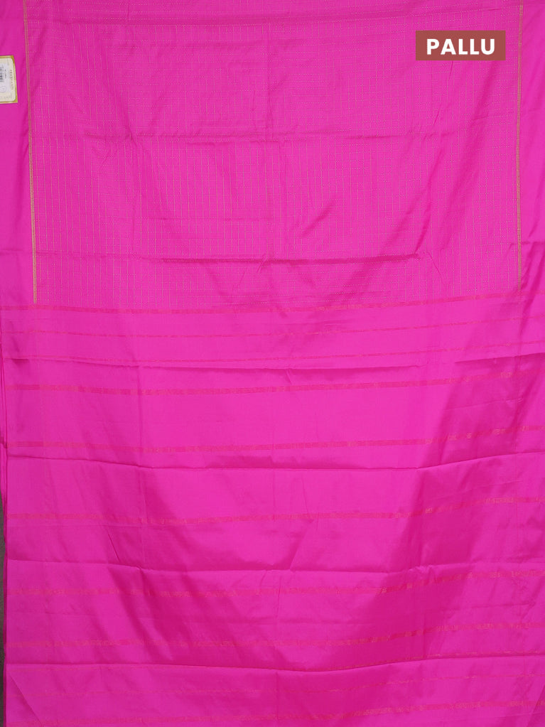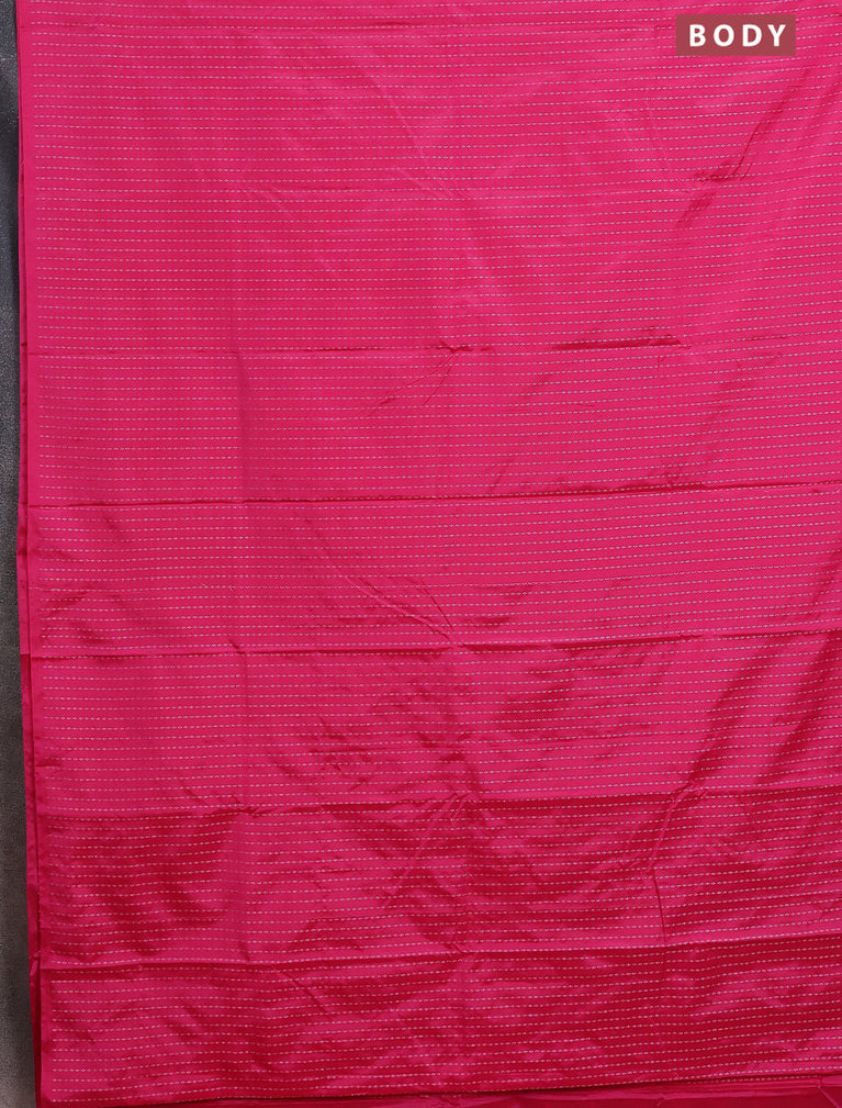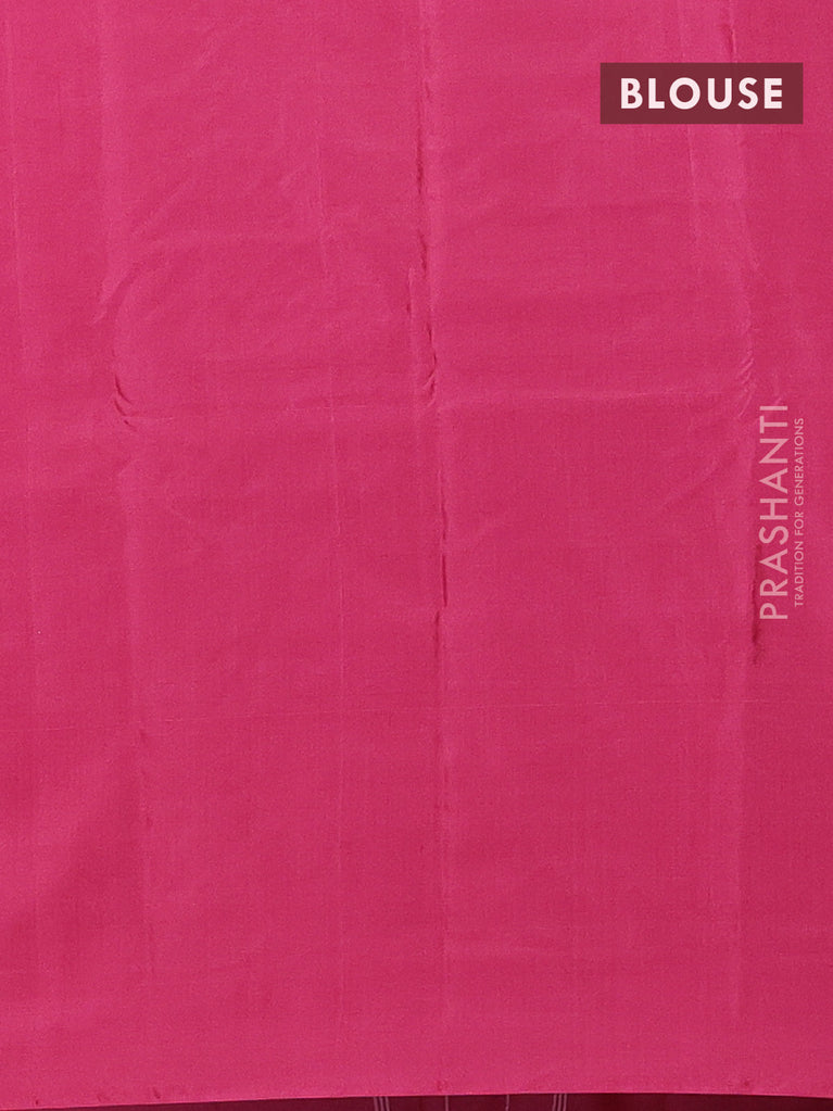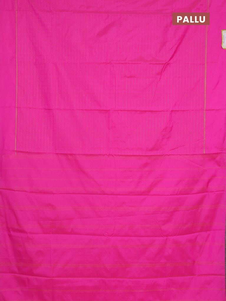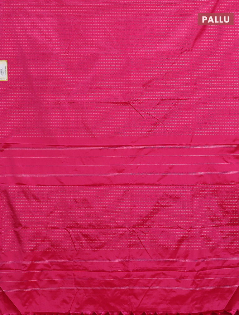 Arani semi silk saree pink with allover silver zari weaves in borderless style