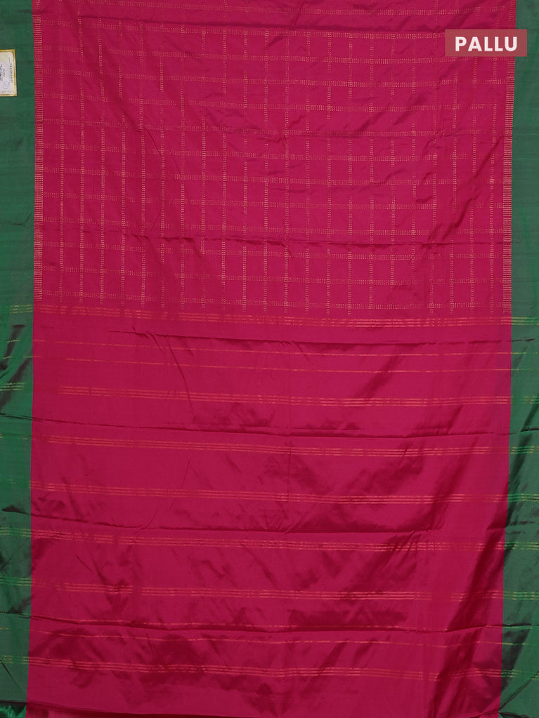 Arani semi silk saree pink and green with allover copper zari checked pattern and copper zari woven simple border