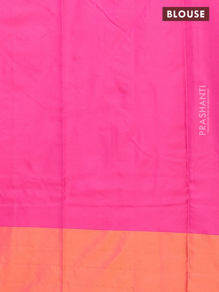 Arani semi silk saree pink and dual shade of pinkish orange with allover copper zari weaves and zari checked border