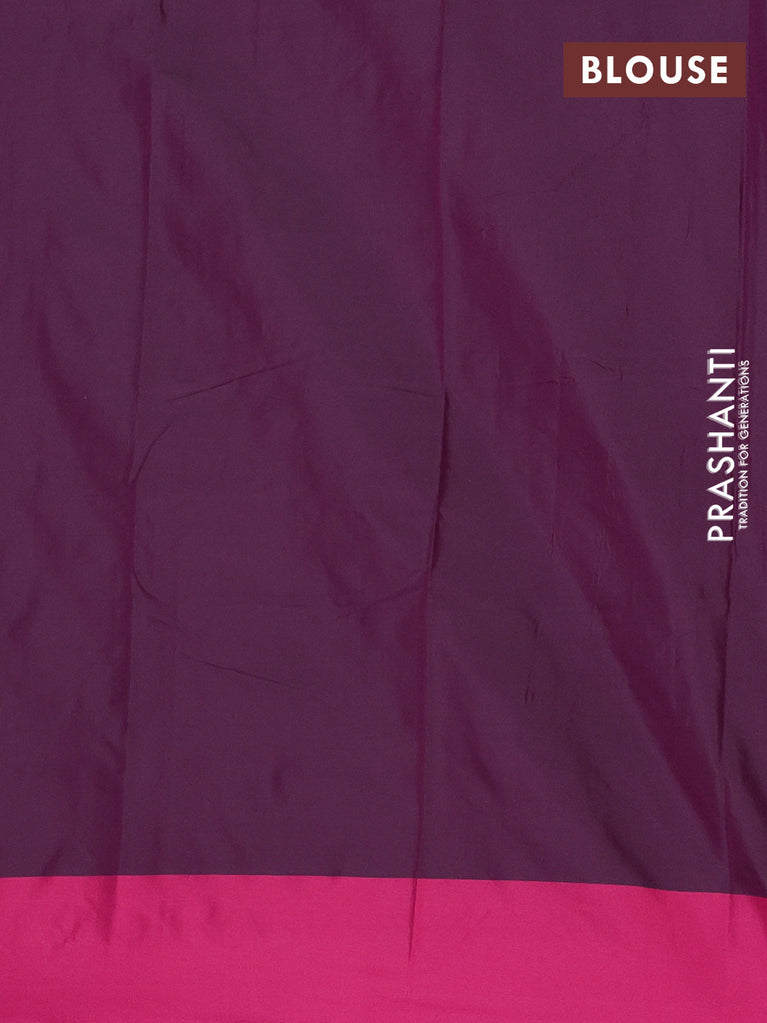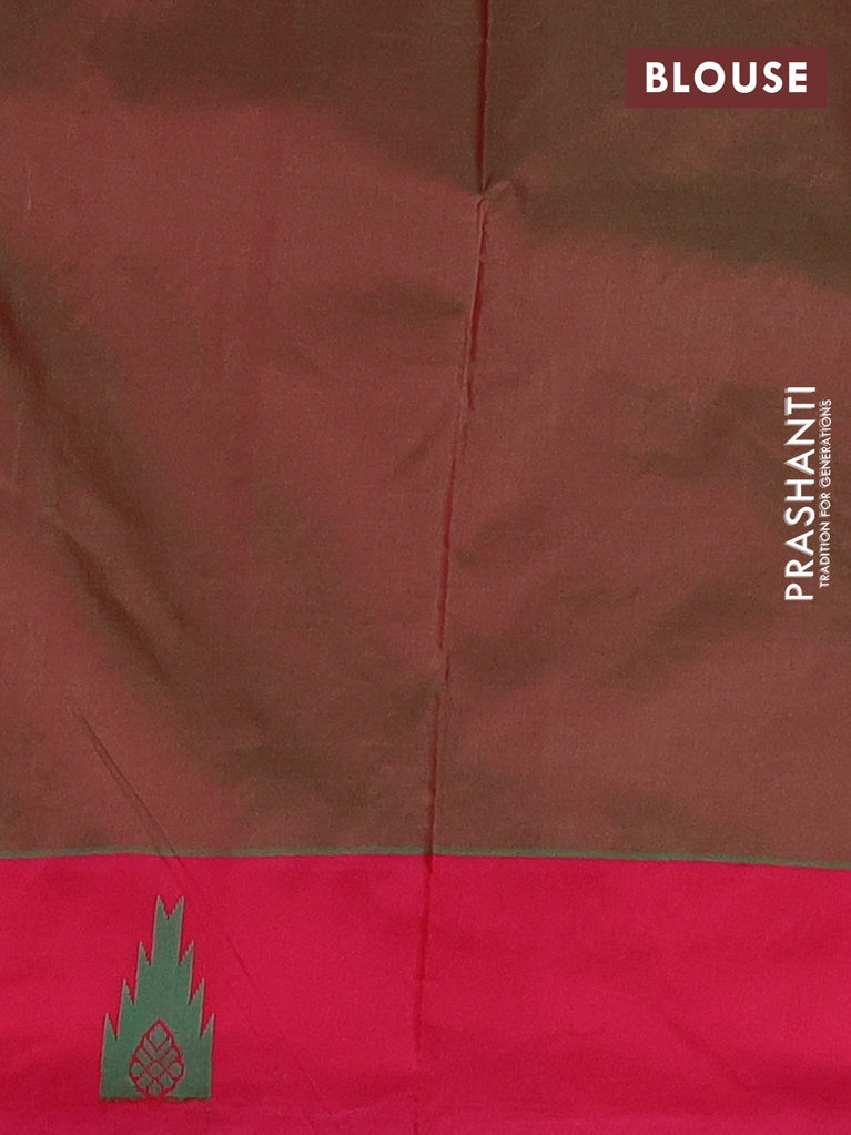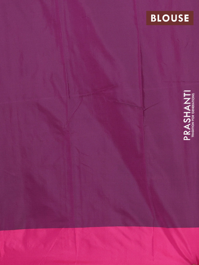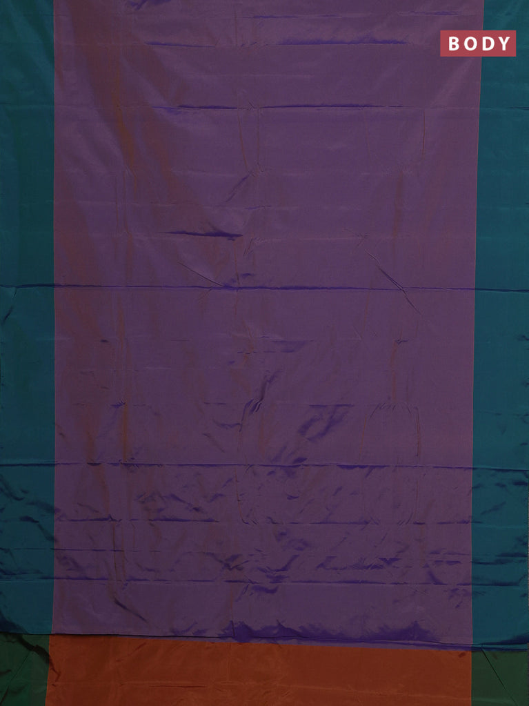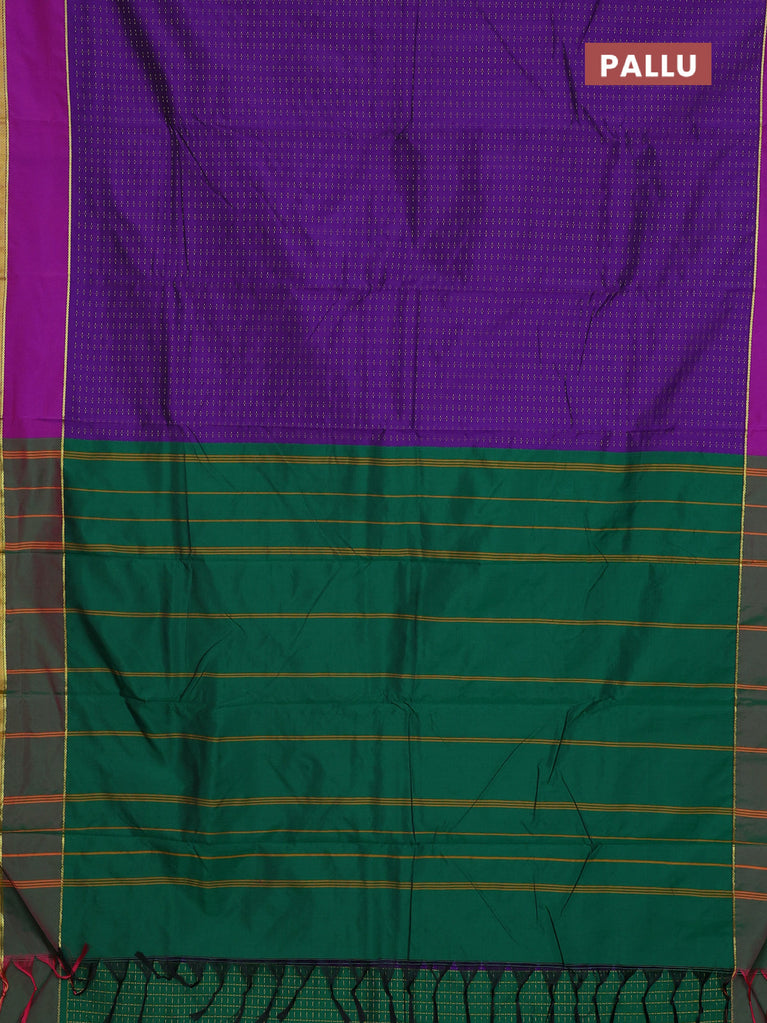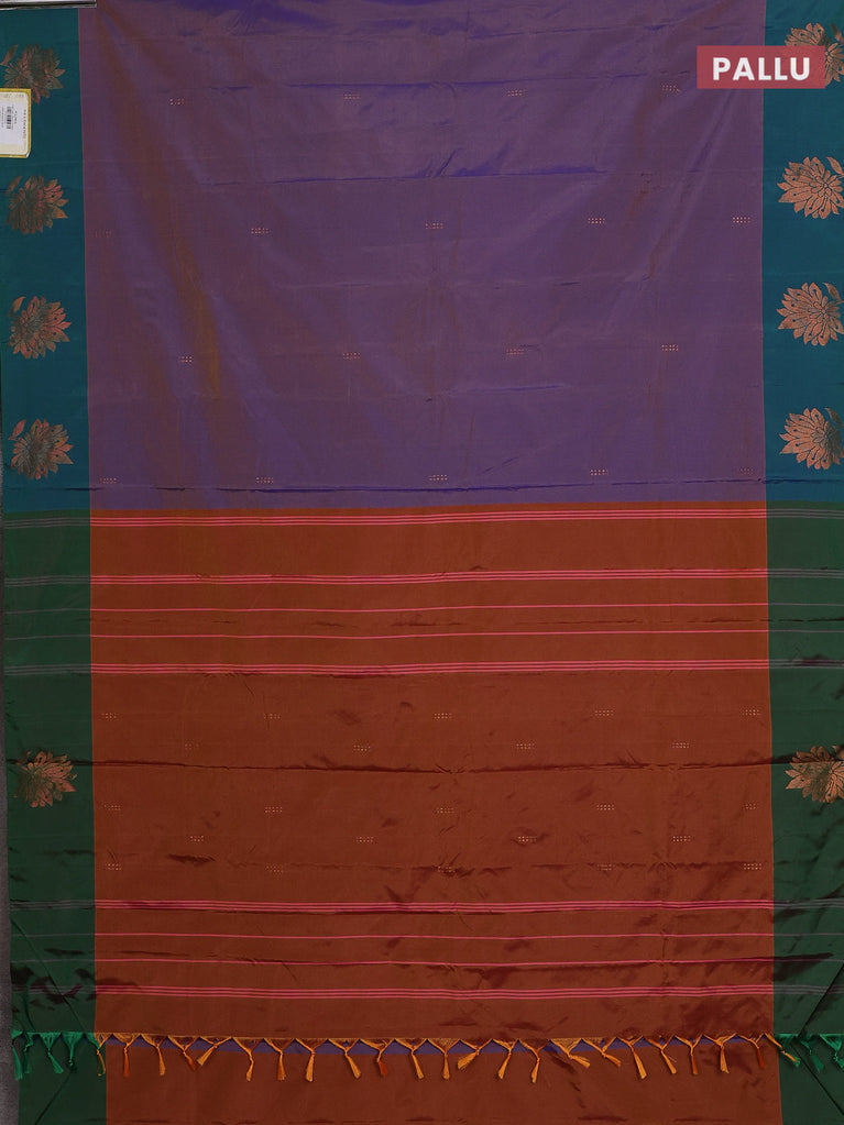 Arani semi silk saree violet and dual shade of green with copper zari woven buttas and zari woven butta border