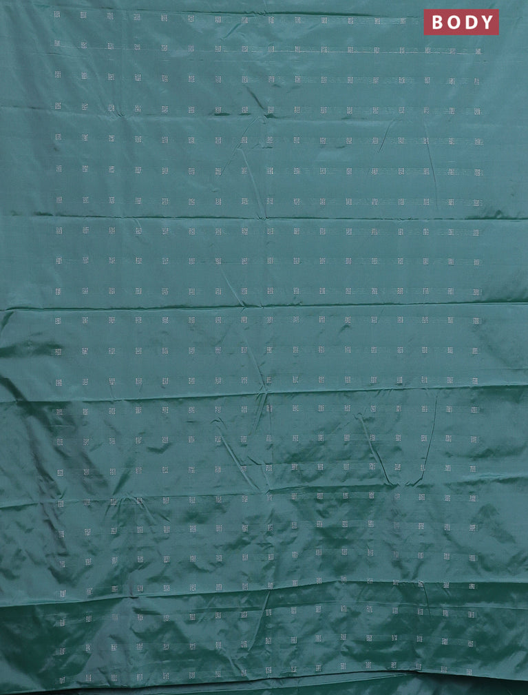 Arani semi silk saree teal green with silver zari woven buttas in borderless style