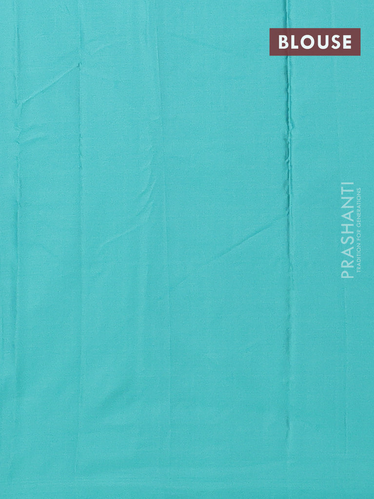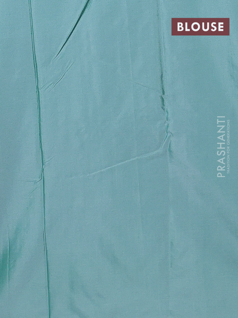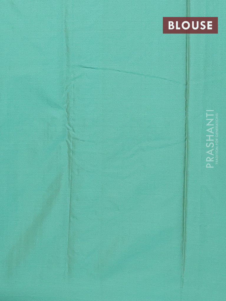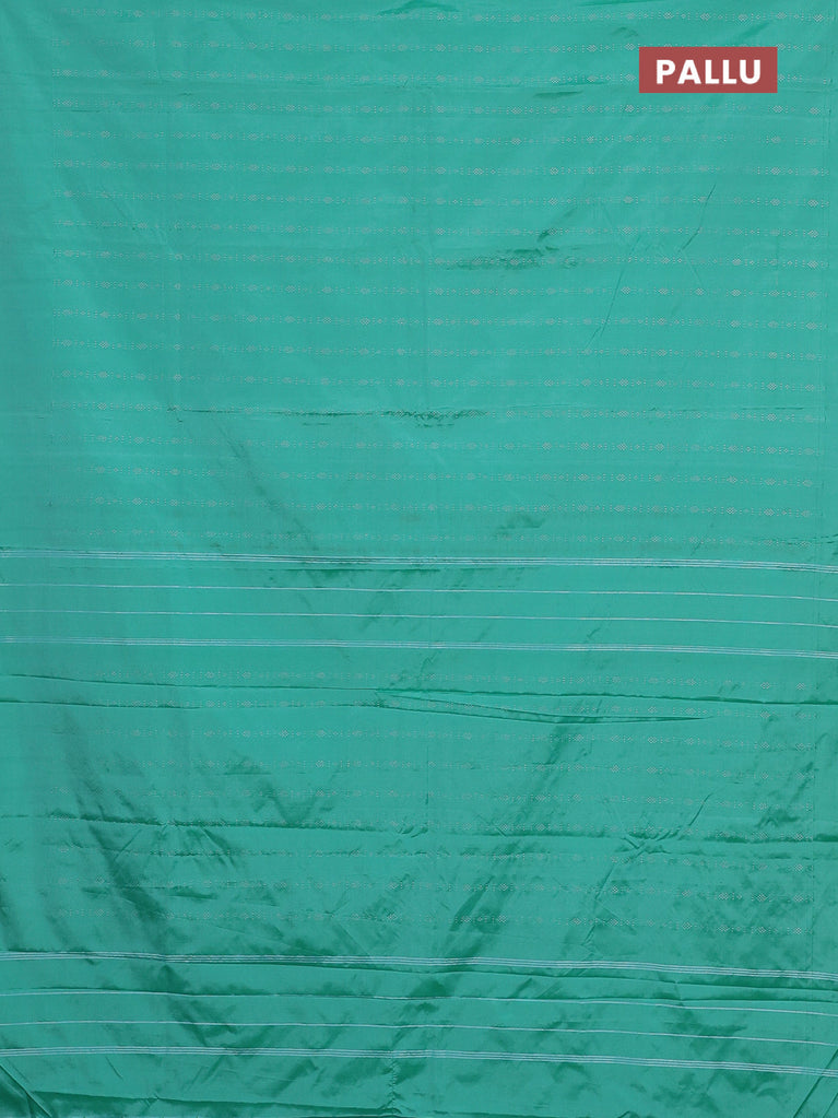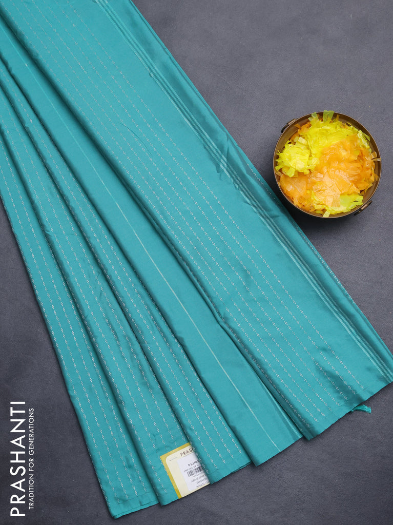 Arani semi silk saree teal green with allover silver zari weaves in borderless style