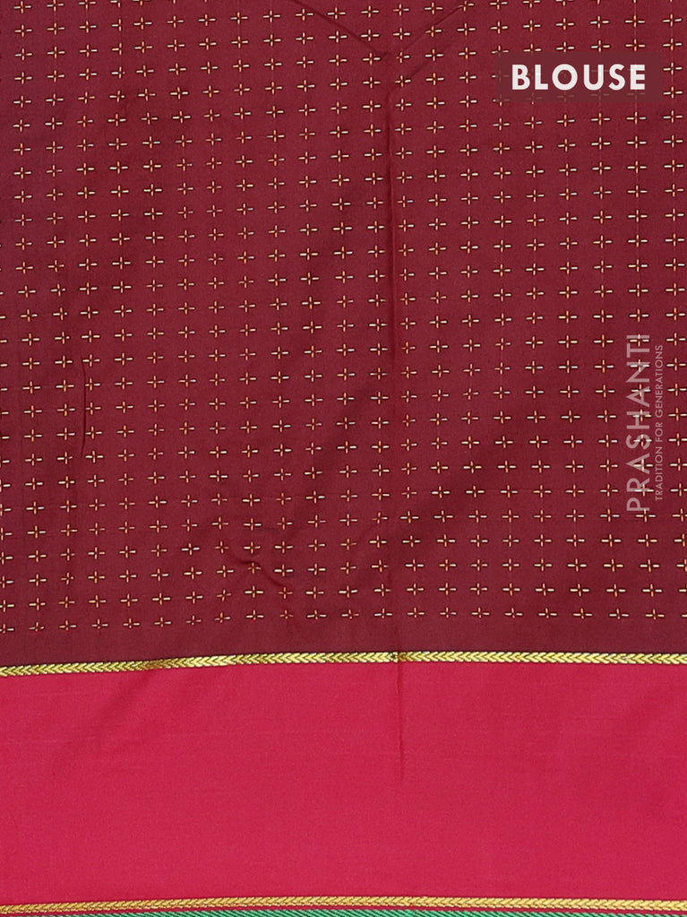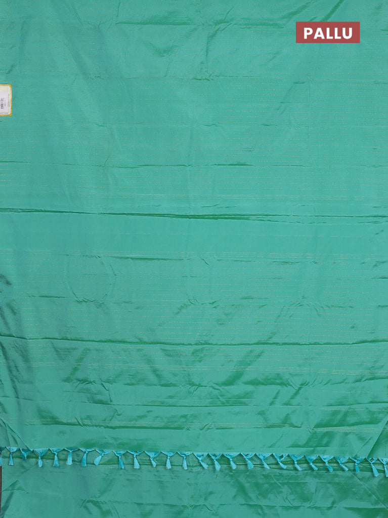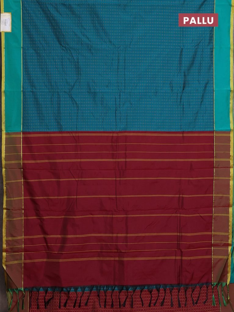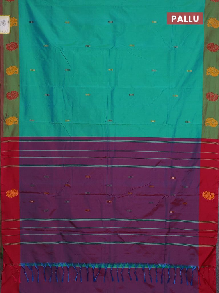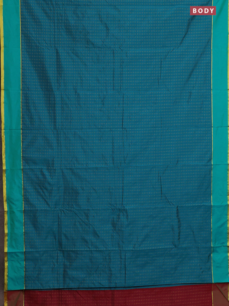 Arani semi silk saree teal green and maroon with thread woven buttas and piping border