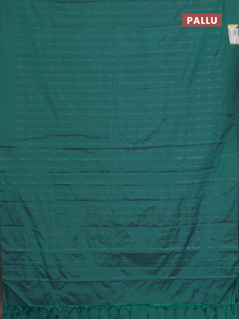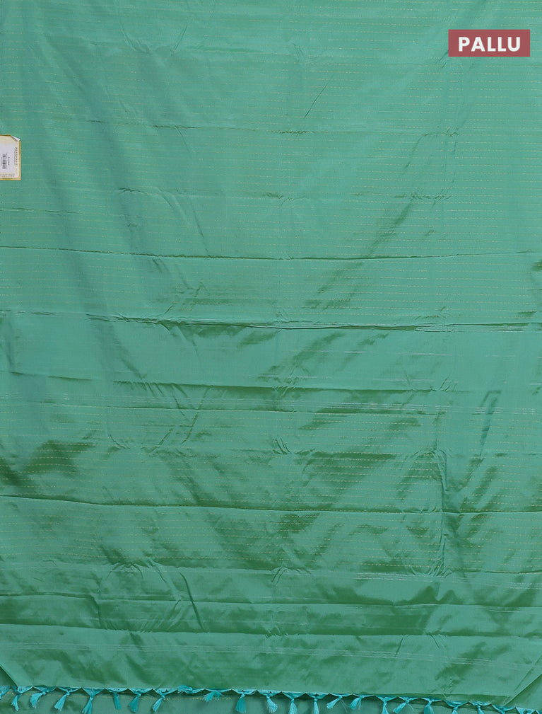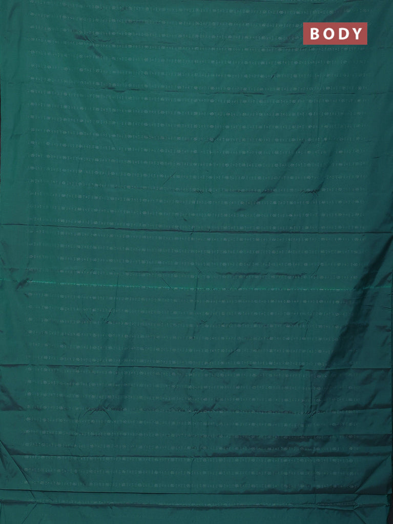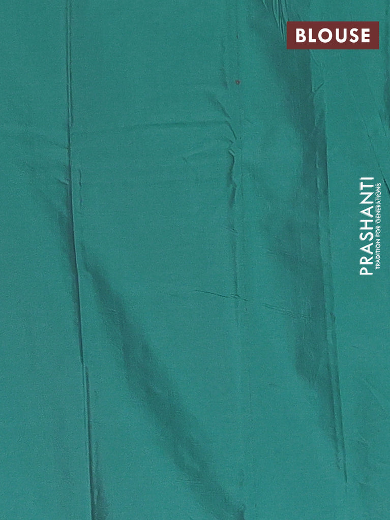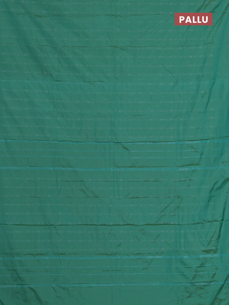 Arani semi silk saree teal green with allover zari weaves in borderless style
