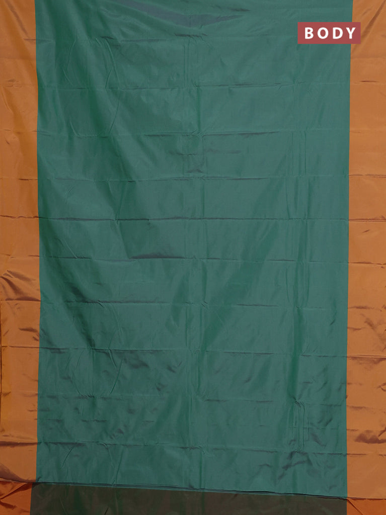 Arani semi silk saree teal green and mustard yellow with zari woven buttas and paisley zari woven butta border