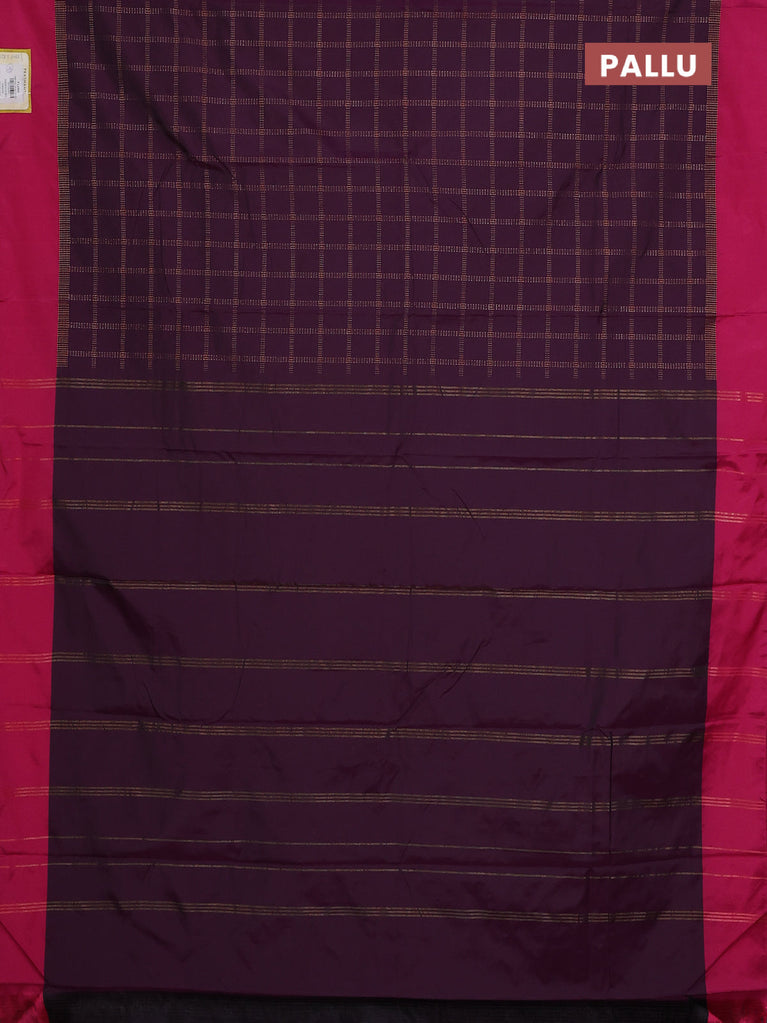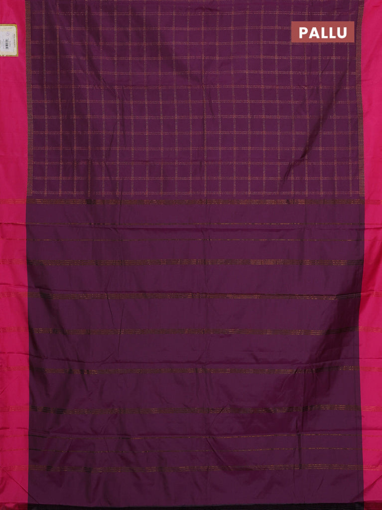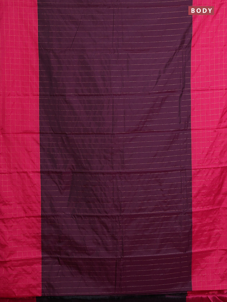 Arani semi silk saree wine shade and pink with allover copper zari checked pattern and copper zari woven simple border