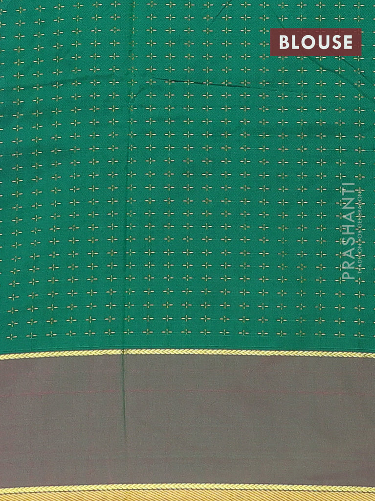 Arani semi silk saree teal green and dual shade of maroonish green with allover thread weaves and rettapet zari woven border`