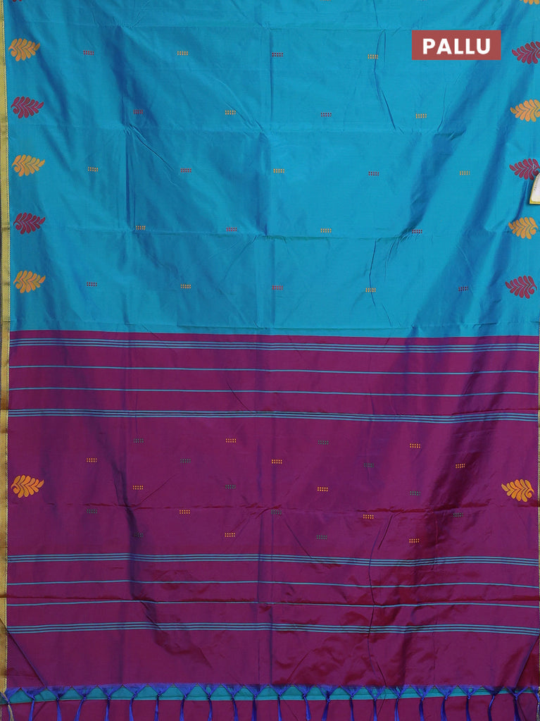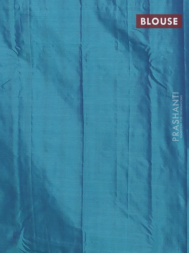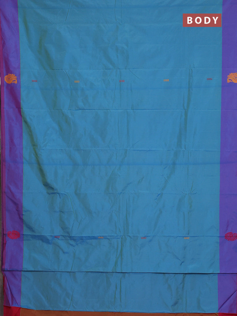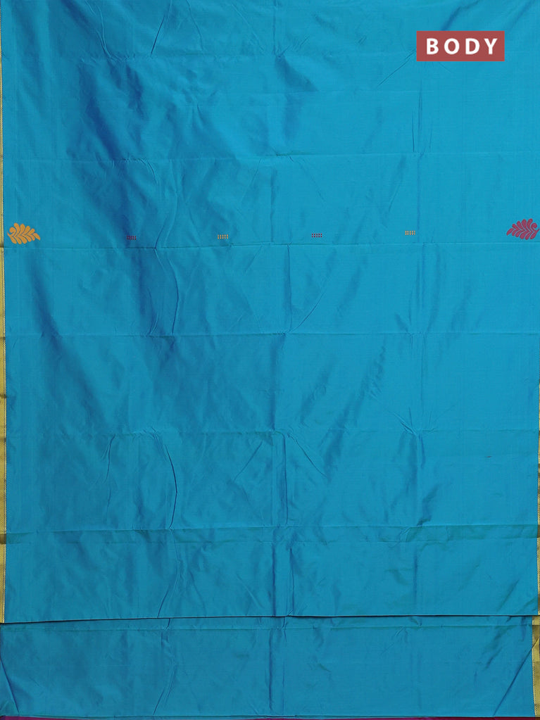 Arani semi silk saree dual shade of teal blue and pink with thread woven buttas and thread woven butta border